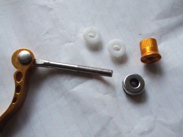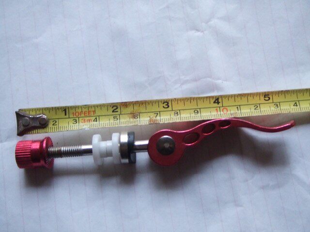 山地车装货架加长快拆杆 无孔自行车装配货架,现在 山地车在装配货架时会在自行车架发现前面没有2个固定货架前支点的孔,另外的方法是可以固定在自行车车座杆上。但是原车的快拆杆长度是无法再加装货架的2个前支点,现在用这个加长后的就可以解决这个问题了,不会再有想装货架装不了。但是需要注意下快拆杆直径大小,装配后如太长,可自行动手裁减短.