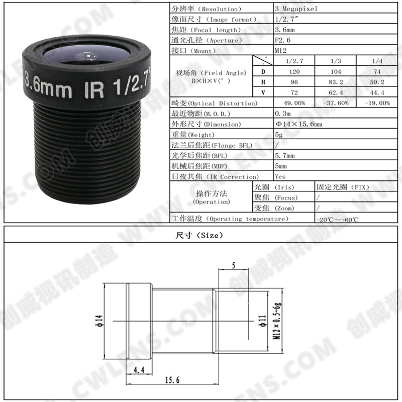 Однобортная камера 3,6 мм 3MP Chuangwei видео ОБЪЕКТИВ HD сеть ОБЪЕКТИВ CW ОБЪЕКТИВ
