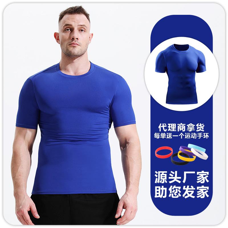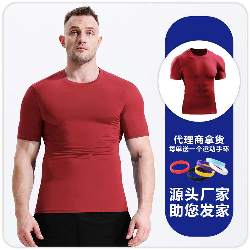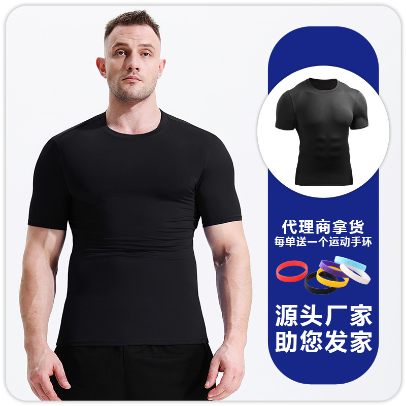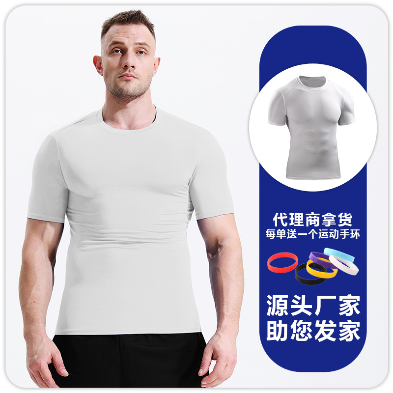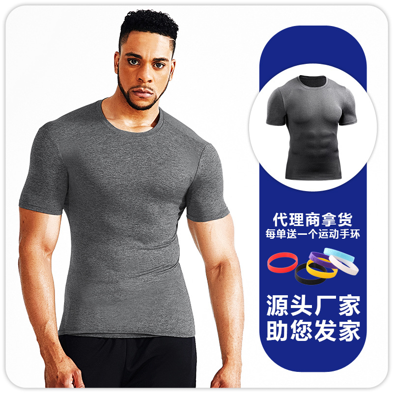 Мужская летняя спортивная футболка с короткими рукавами для бега Красивая облегающая футболка с круглым вырезом Быстросохнущая дышащая впитывающая пот баскетбольная Футболка
