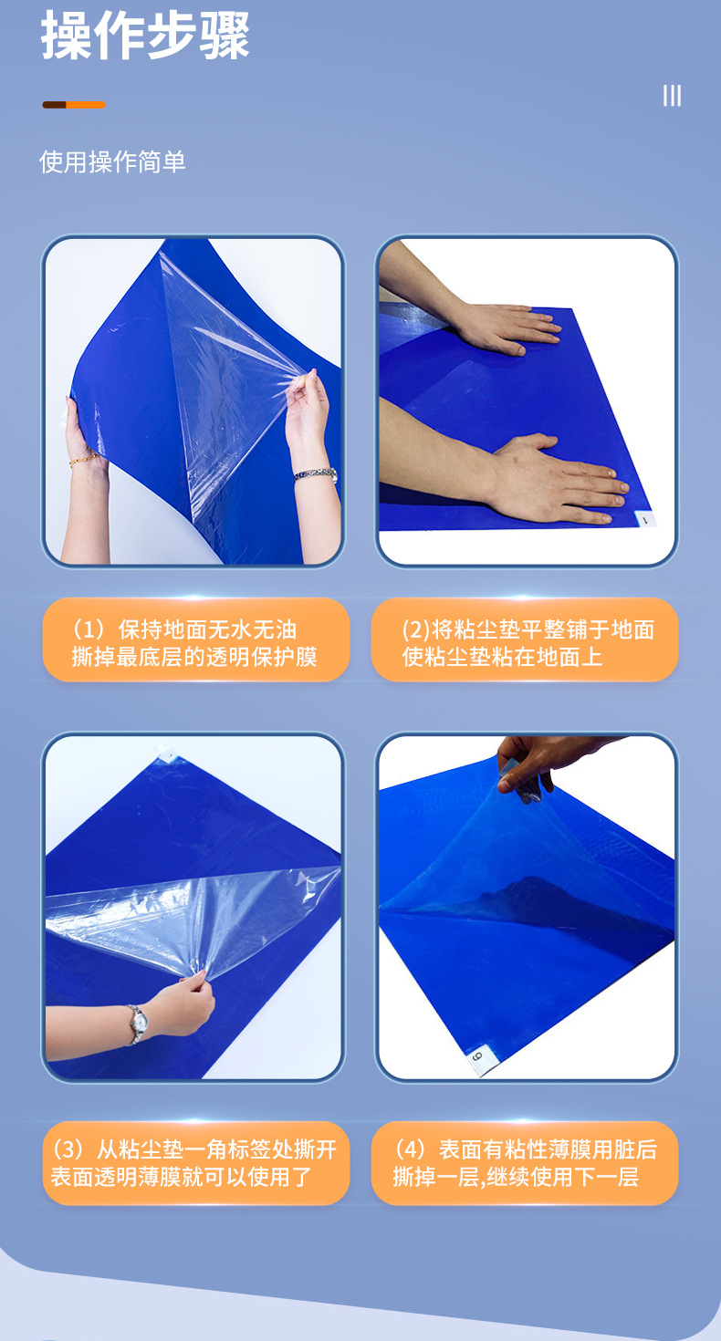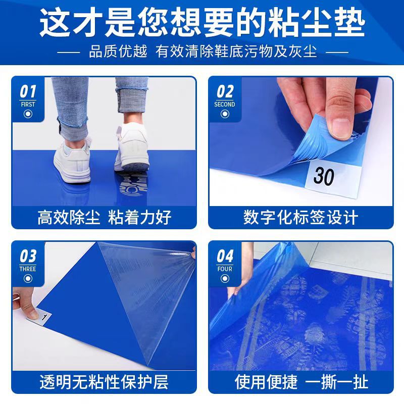 Оптовая продажа, одноразовый синий пылепоглощающий коврик, антистатический электростатический напольный коврик, отрывной коврик для ног, коврик для удаления пыли из ПЭ
