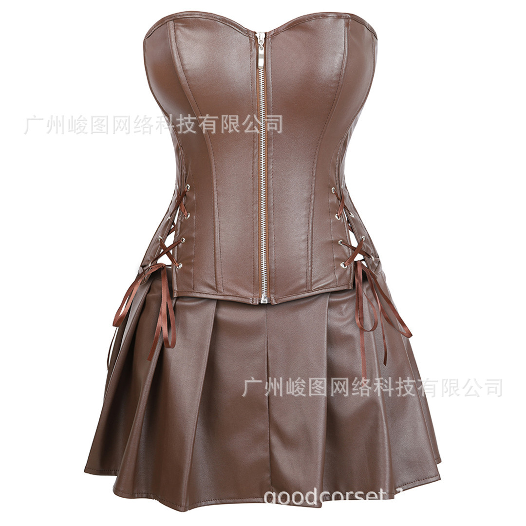 Европейский и американский модный панк-стиль, комплект из двух предметов из искусственной кожи с молнией, женское корректирующее белье для контроля живота, оптовая продажа напрямую с фабрики.