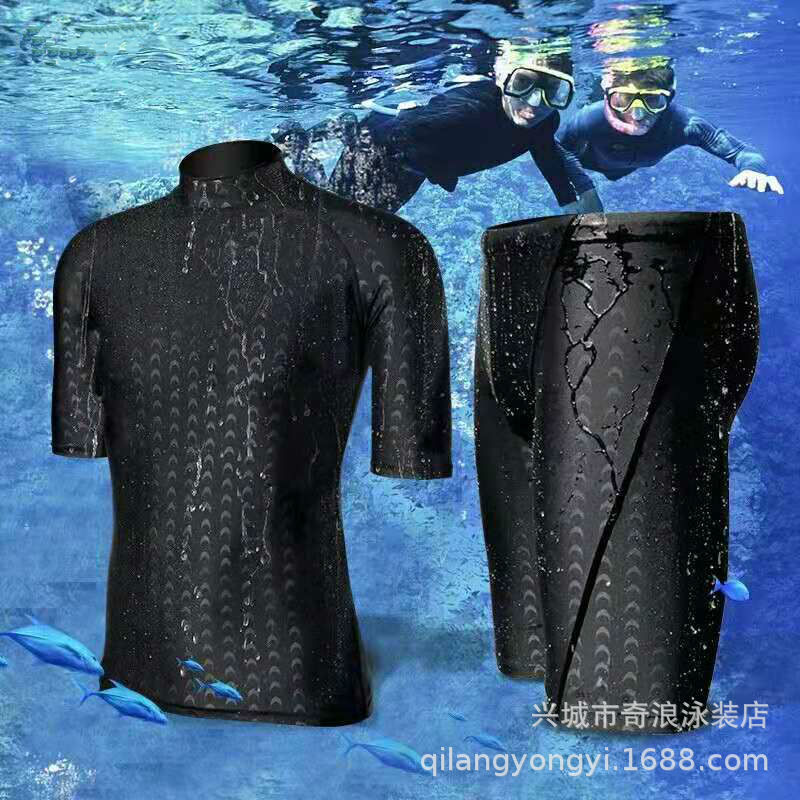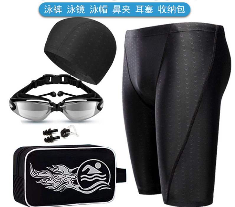 时尚大码泳裤 男士五分游泳裤套装 宽松舒适防水泳衣五件套