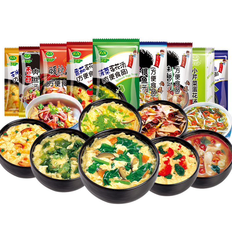 Суп из морских водорослей Xinmeixiang, готовый к употреблению заменитель еды, лиофилизированный суп из белого гриба, овощной суп, суп с вонтоном, пакетик приправ, суп быстрого приготовления