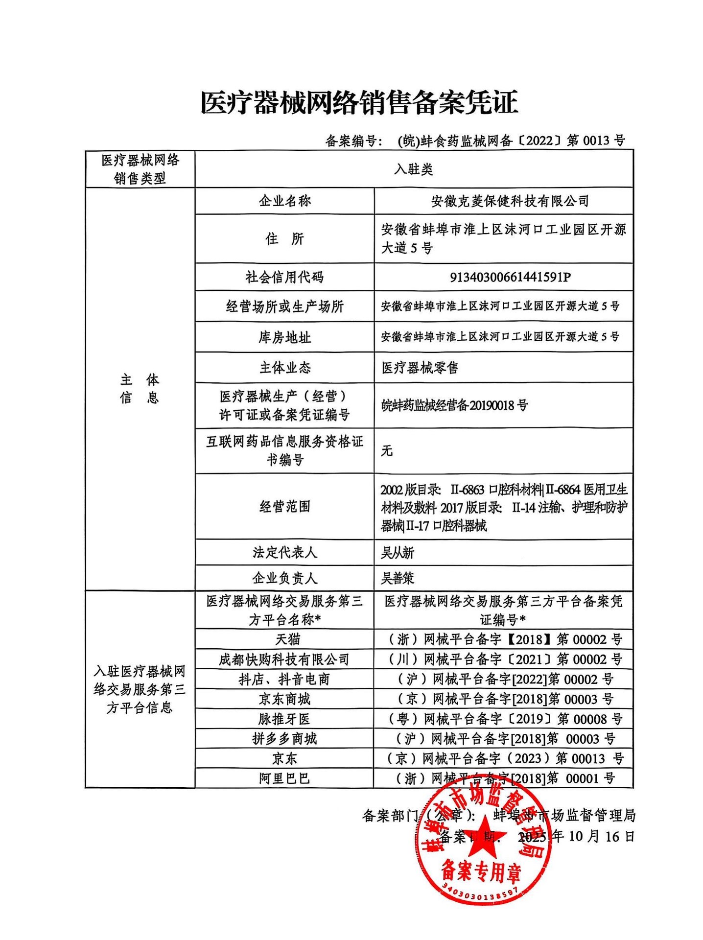 安固垫片第二类医疗器械注册证编号:皖械注准20242170205