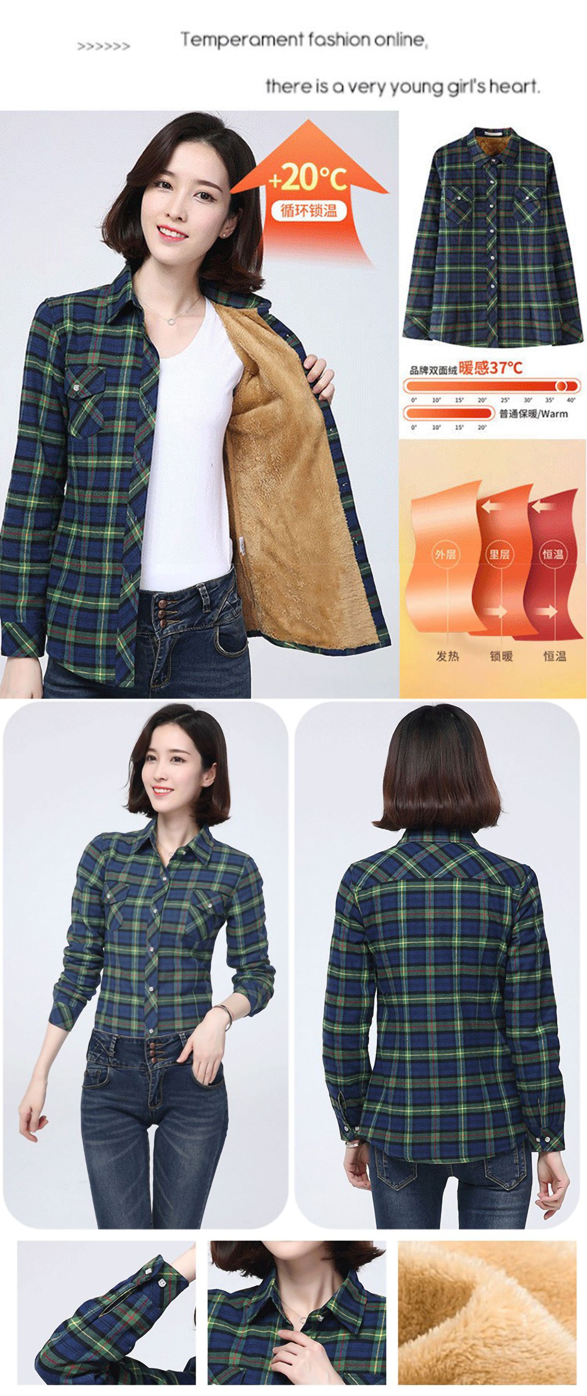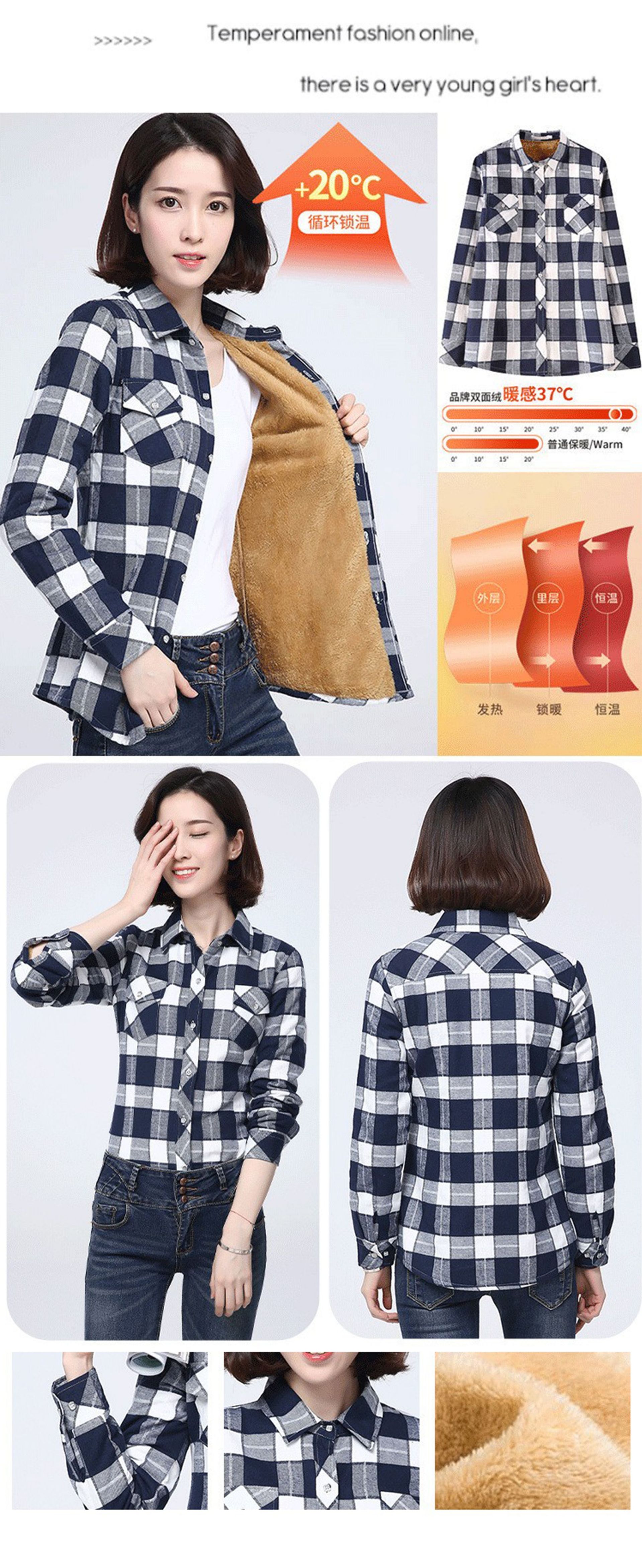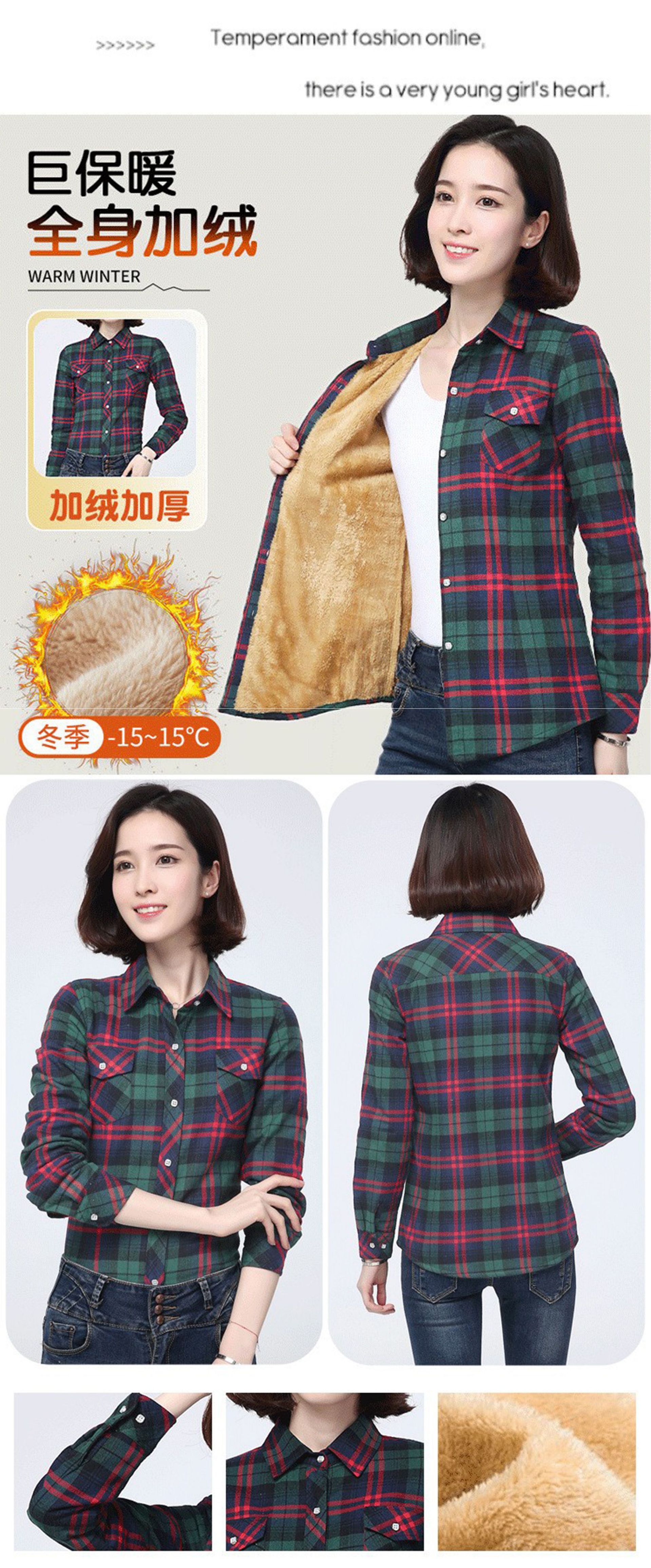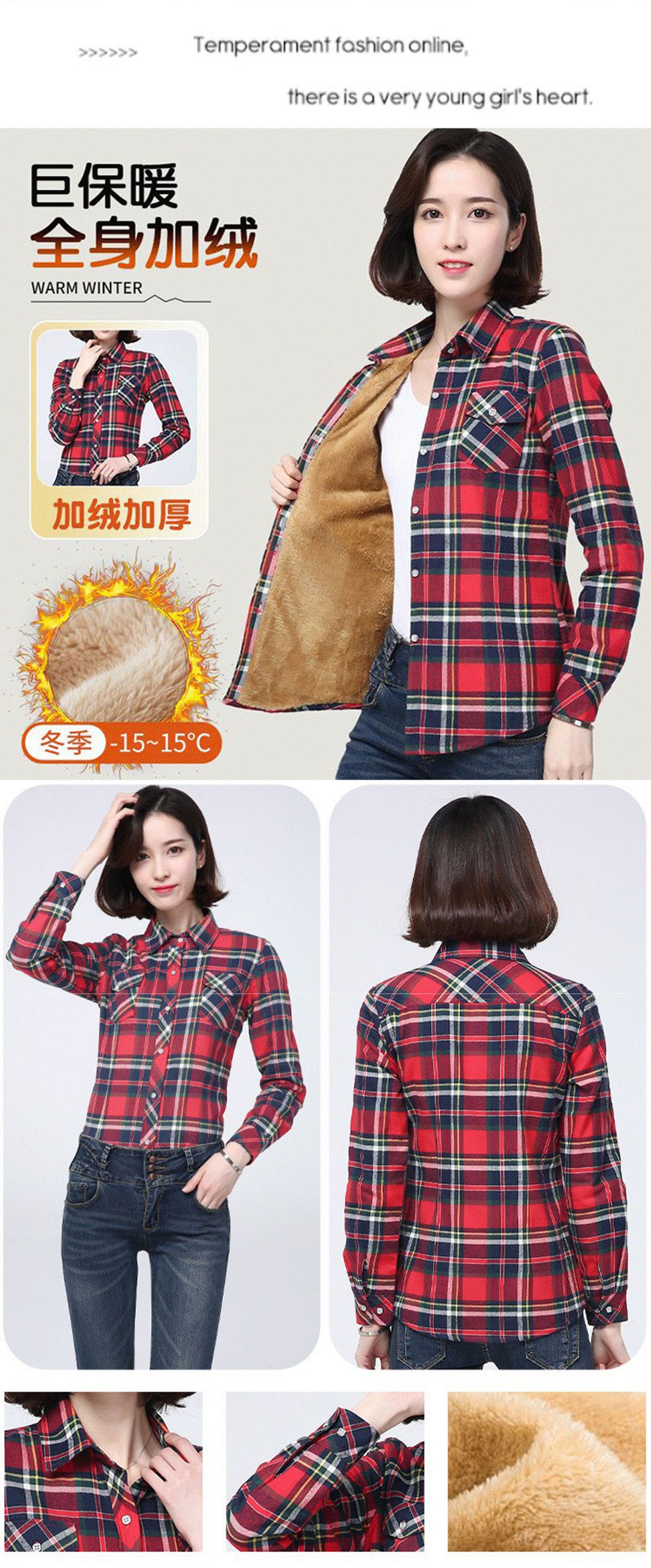Новая зимняя женская рубашка 2025 года: приталенная, универсальная, хлопковая, теплая, в клетку, с длинным рукавом, на флисовой подкладке, утолщенная, базовая модель больших размеров.