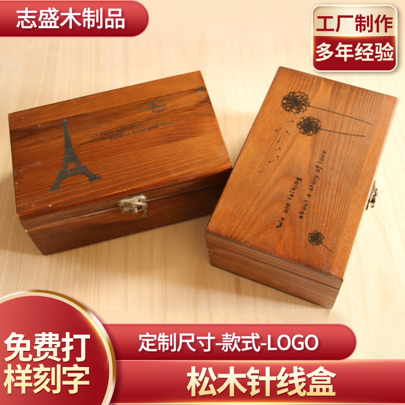 Креативная деревянная швейная коробка прямоугольный откидной замок для хранения шитья деревянная коробка ретро проблемный Настольный ящик для хранения