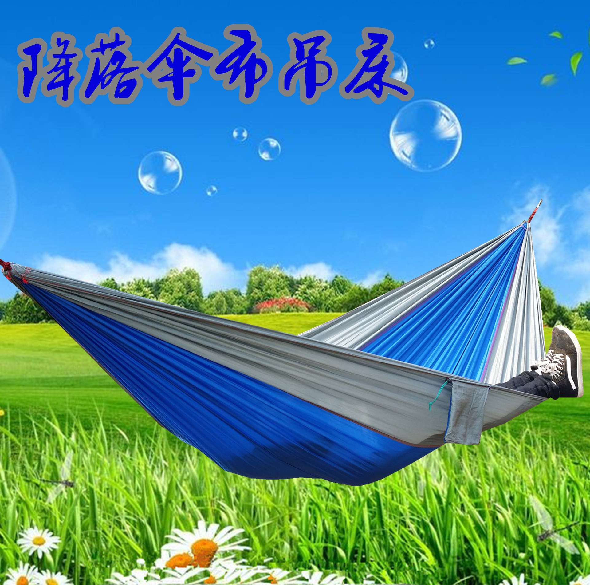 Голубое небо на открытом воздухе. Открытый парашютный гамак/печатный логотип открытый гамак. москитная сетка гамак