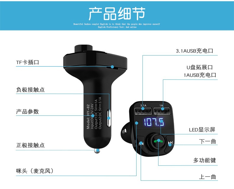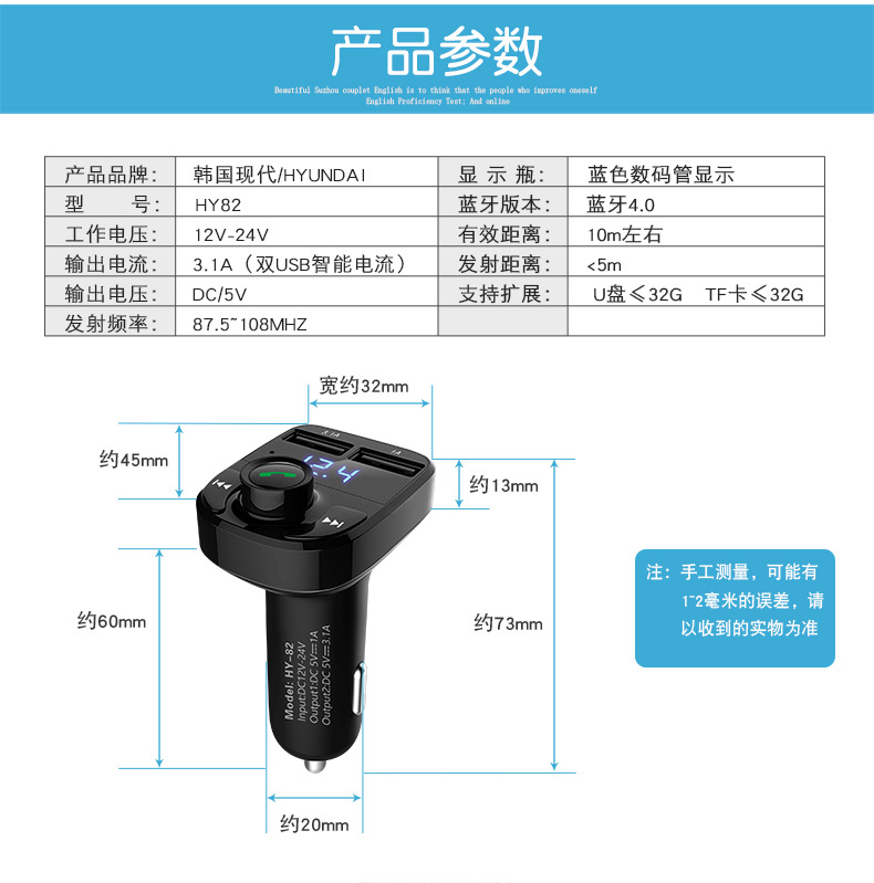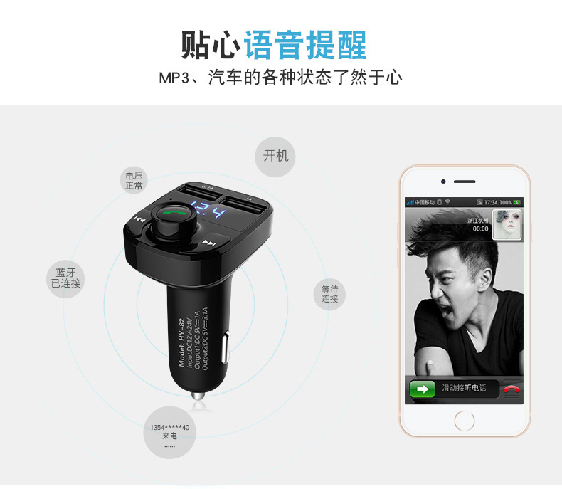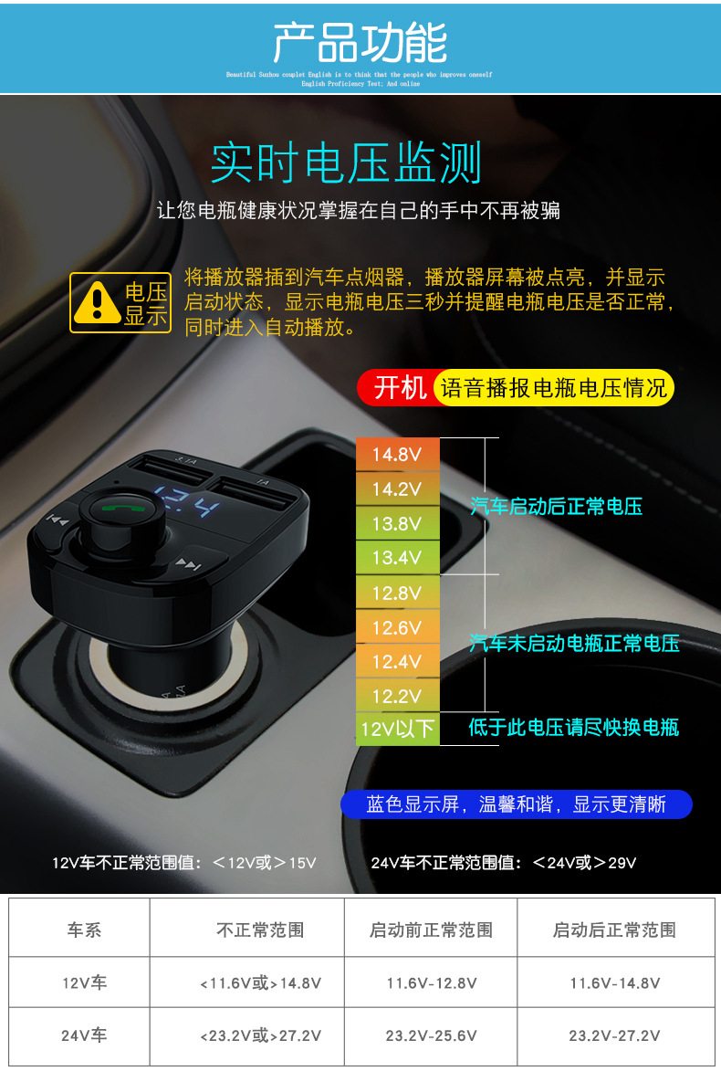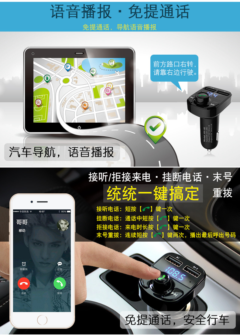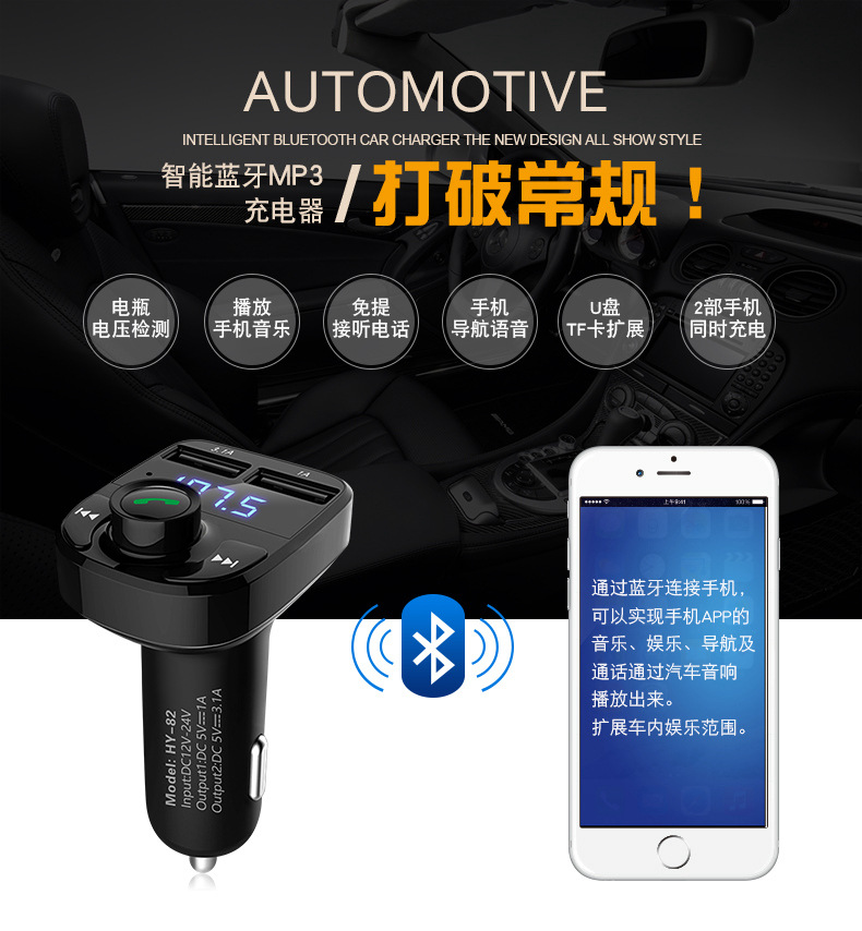Трансграничный автомобиль Bluetooth MP3-плеер Автомобильное зарядное устройство FM-передатчик громкой связи двойной порт USB-приемник производителей
