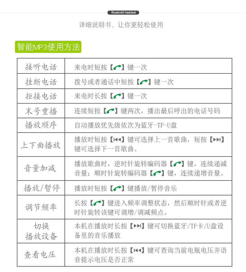 7.噪音消除功能、内置噪音消除电路,使通话声音更清晰