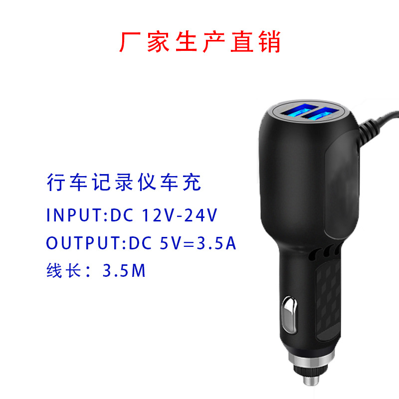 Двойной USB3.5A Автомобильный регистратор шнур питания GPS-навигатор зарядное устройство Т-образный рот 3,5 метра автомобильное зарядное устройство