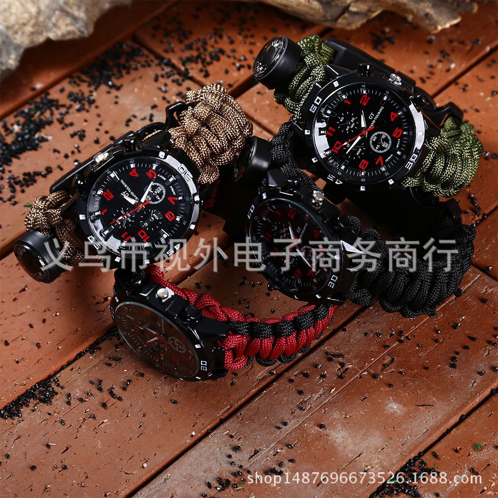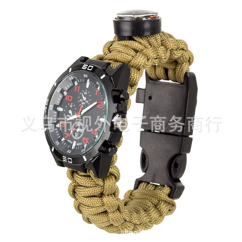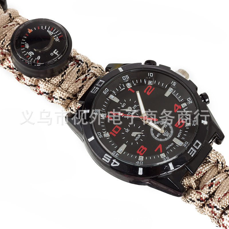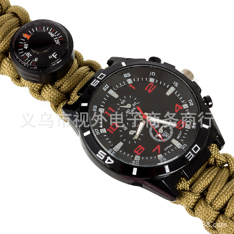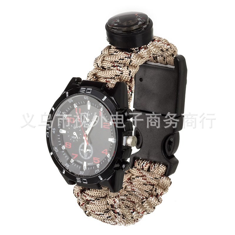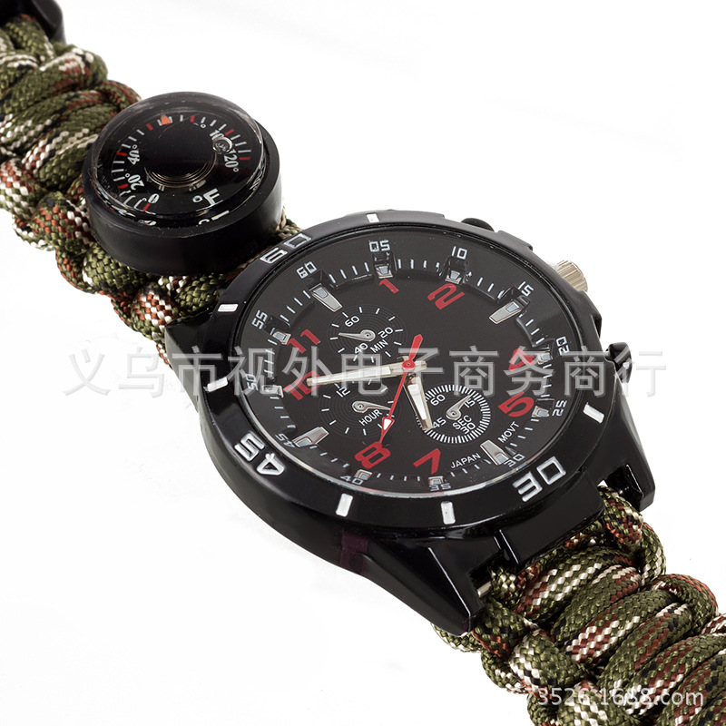 新款户外伞绳编织手表 手工编织表带 涤纶伞绳手表 登山表 求生绳