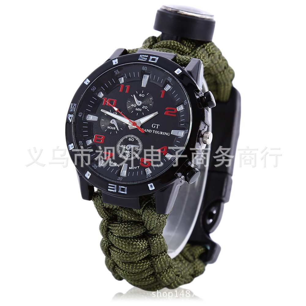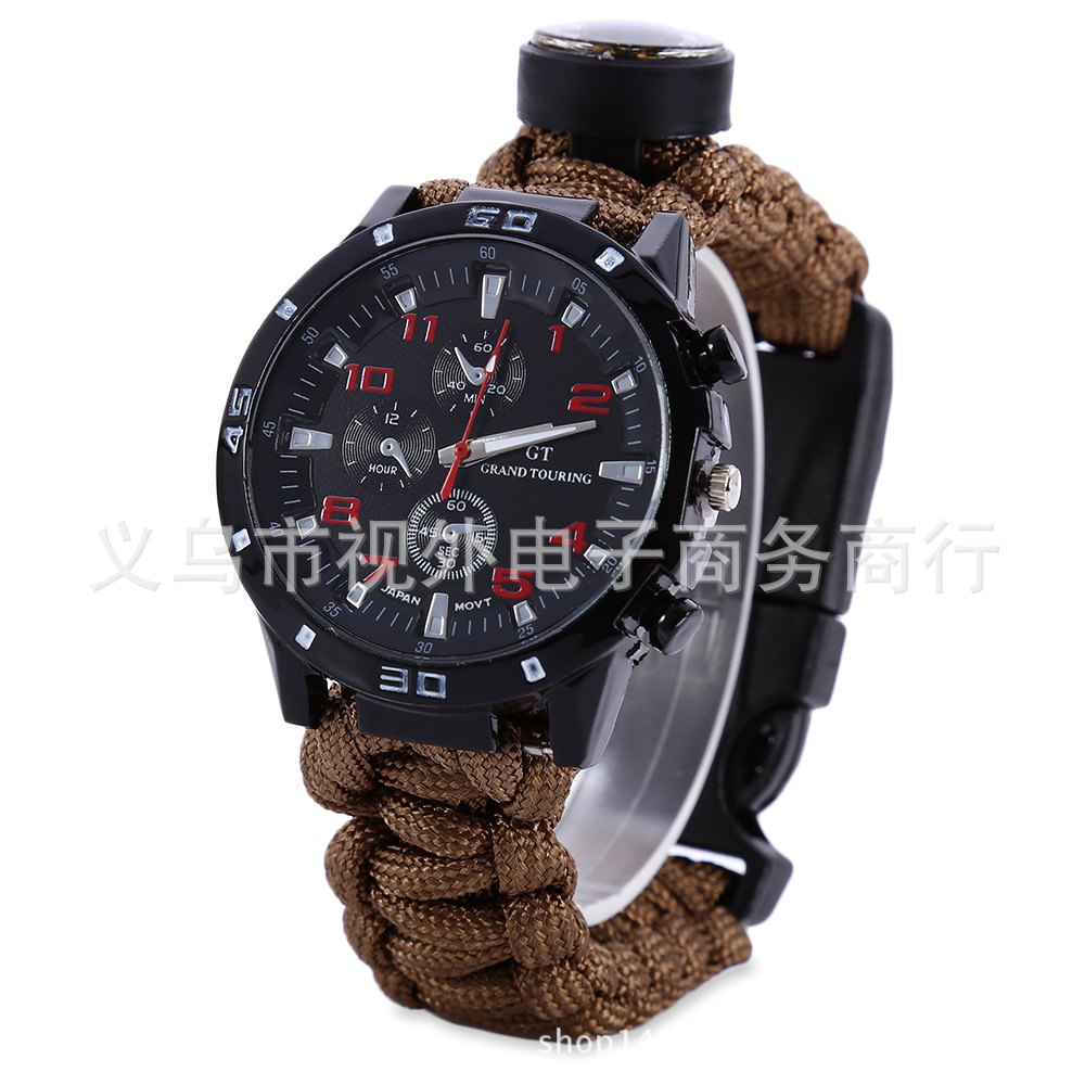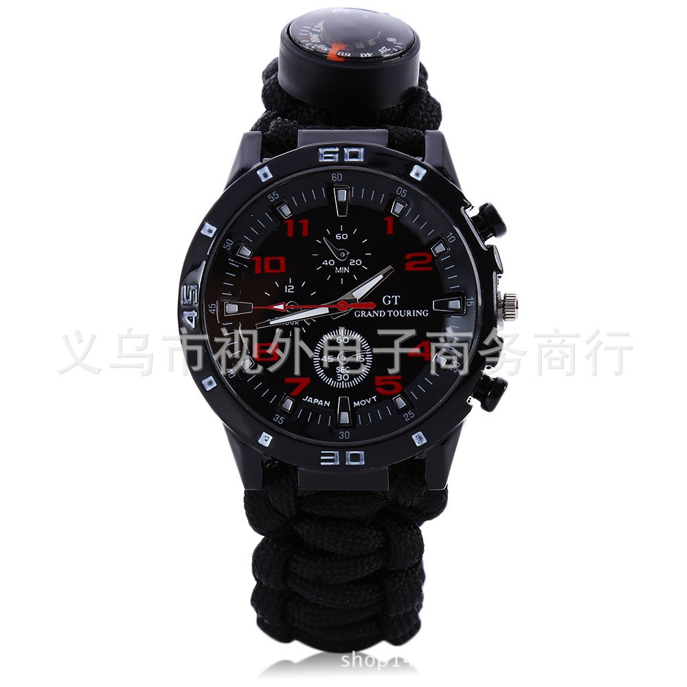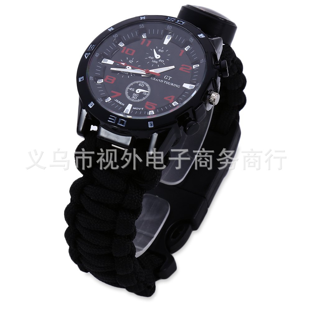 新款户外伞绳编织手表 手工编织表带 涤纶伞绳手表 登山表 求生绳