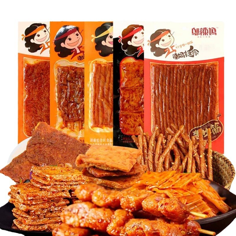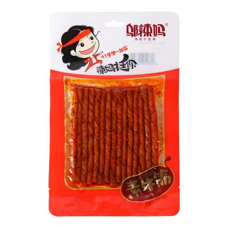 70 г острый рулет из фасоли с острой начинкой; 70 г острый рулет из фасоли с чесночным вкусом; 45 г острой хрустящей рыбной личинки; 45 г острого и хрустящего филе небольшой рыбы; 100 г вегетарианского говяжьего сухожилия; 100 г палочек чесночных бобов; 100 г острого вегетарианского стейка; 100 г чесночного вегетарианского стейка; 100 г стейка, приготовленного на углях; 90 г вегетарианских шашлыков из баранины; 90 г вегетарианского говяжьего тофу; 90 г острой хрустящей кожи; 90 г мяса «тигровая кожа» (ранее известного как грибной тофу); 90 г маринованного перца и сушеного перца; 90 г шашлыков из каменной сахарной пудры; 85 г шариков рок-сахара; 85 г вегетарианской колбасы на шпажке; 85г Шашлыки 520; 85 г шампуров 100; 85 г сушеных ароматных шампуров орхидей; 85 г вегетарианских говяжьих шариков; 85 г корейских обжаренных сухих благовоний; 80 г вегетарианских мясных шашлыков из железной пластины; 80 г вегетарианских куриных шашлыков; 80 г сушеного куриного сока; 80 г чайного масла тофу; 108 г старомодных остреньких ломтиков; 108 г старомодного пикантного чесночного вкуса