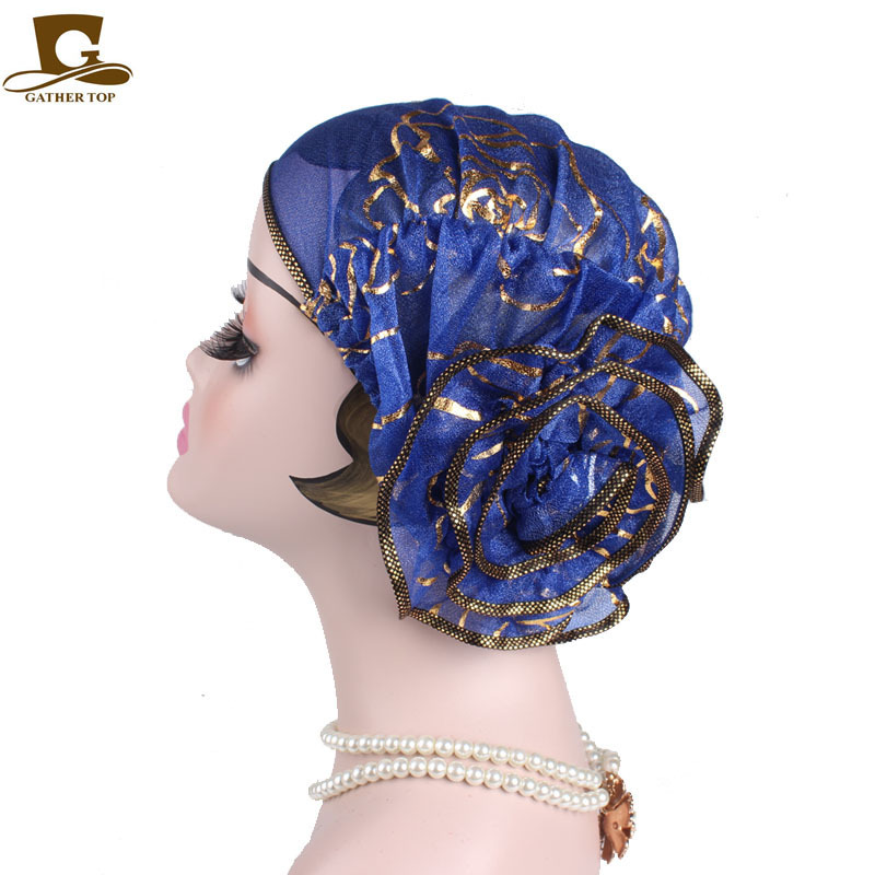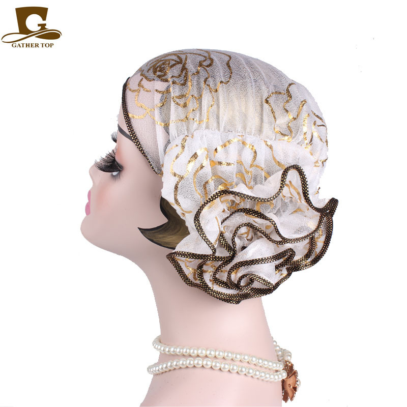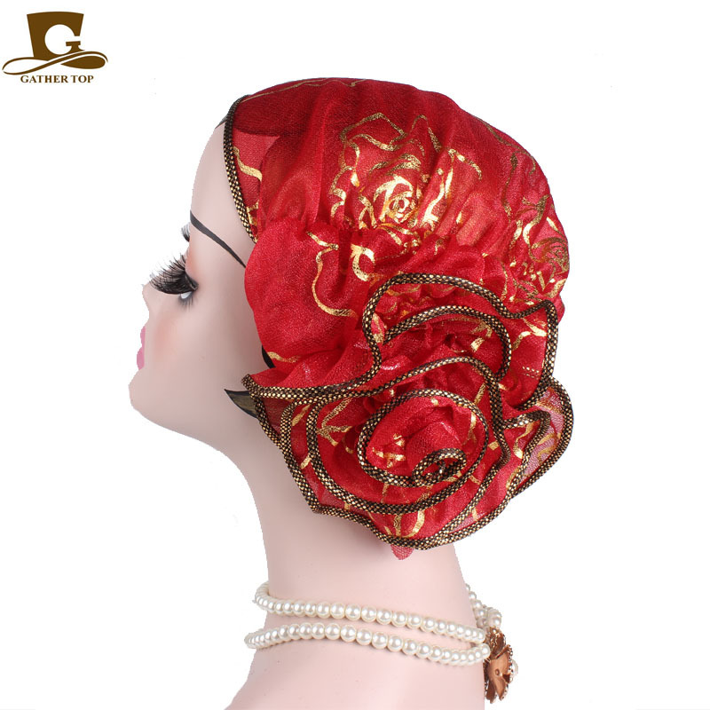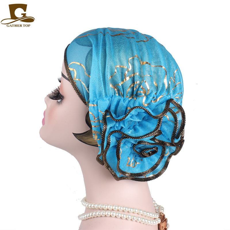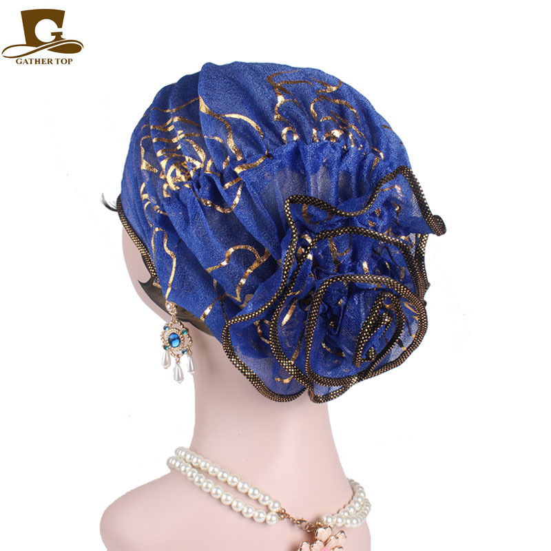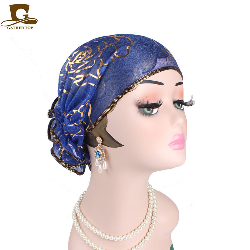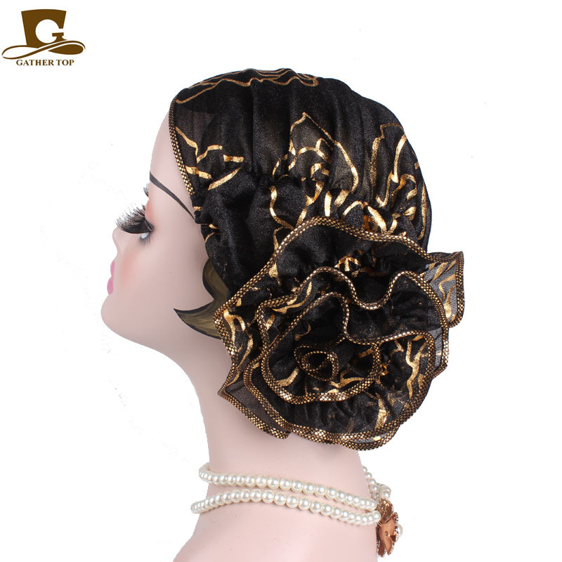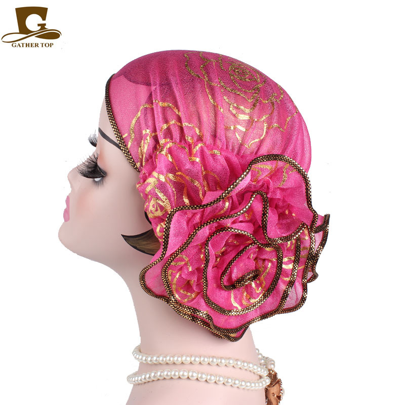 穆斯林头巾帽 黑色金色玫瑰花套头帽 春秋款 印度帽 TJM-304