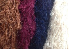 2、有色仿貂毛1.3公分为绒羽型,适合秋冬服装。2公分羽毛纱多用于与常规纱搭配,提花,间色,混毛等织物.也可用于单织,