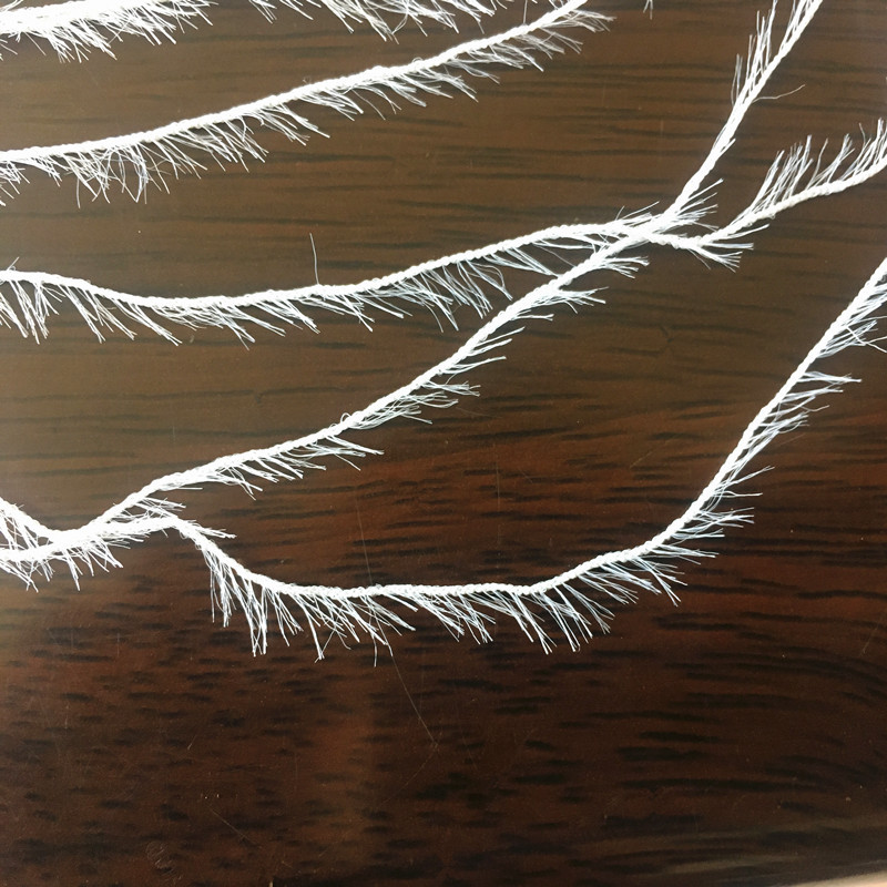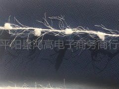 1、1.3公分有色羽毛纱:优点是羽长自然竖立,光泽好,手感柔软,耐磨性也高于其他所有纤维,弹性回复率可达100%;能经受上万次折挠而不断裂。由于羽毛有方向性分布,织成的织物除光泽柔和外,布面显得丰满,极具装饰效果,且辉美羽毛纱优于其它绒毛类纱线的特点是不易掉毛。其服用性能好,保暖性强,宜在衣、帽、围巾、袜子、手套上大量使用,自推出以来,深受广大客户的好评。