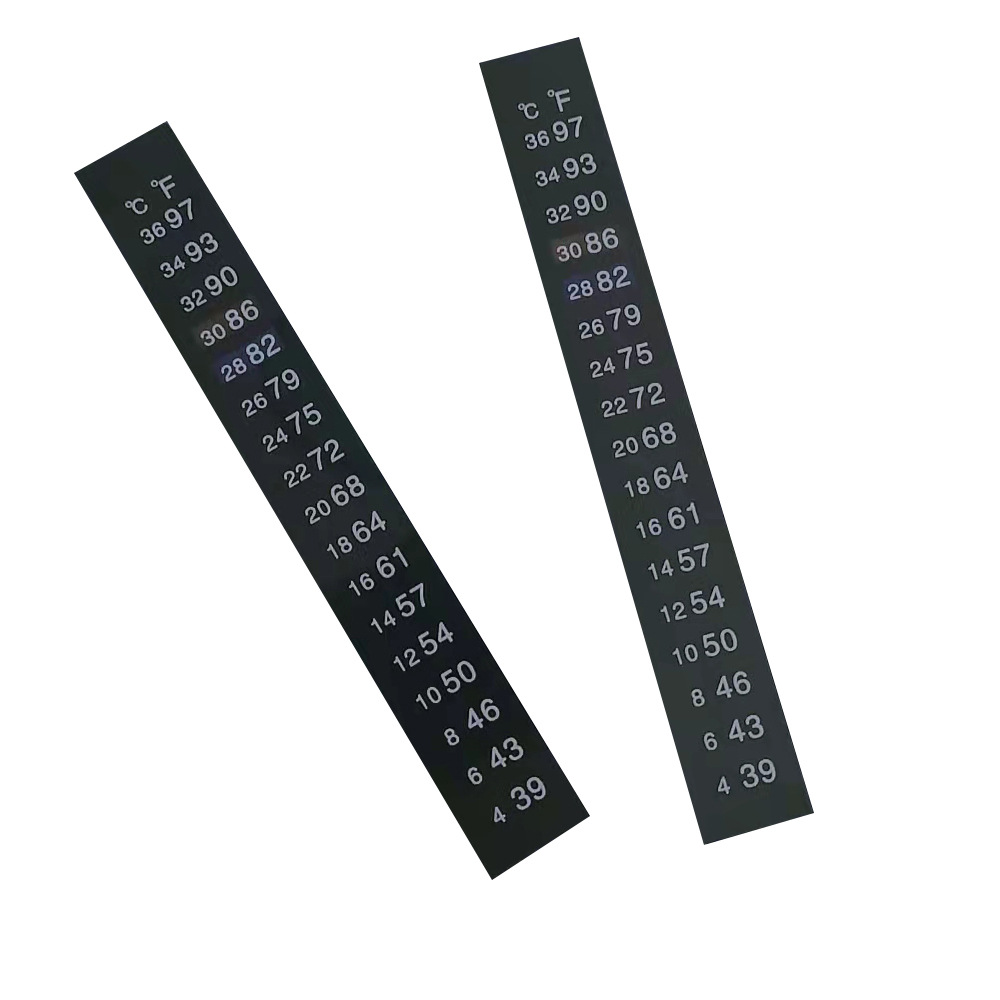 В наличии: термостикеры для ЖК-дисплеев (4-36 градусов), пленка для изменения цвета ЖК-дисплеев, термостикеры для аквариумов, термостикеры для определения температуры вина