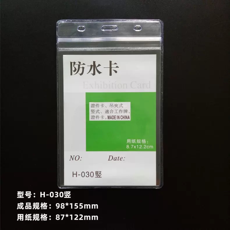 软质防水PVC展会卡采用台湾PVC原料制作,产品手感觉厚实,透明度高,独特的防水口设计更能有效保护内纸不受损伤,是专为在潮湿环境工作的人员量身订做的一款产品。适用于放置员工卡、工作证、工号牌、学生证、会议贵宾卡、出入证、等各种证件卡。
