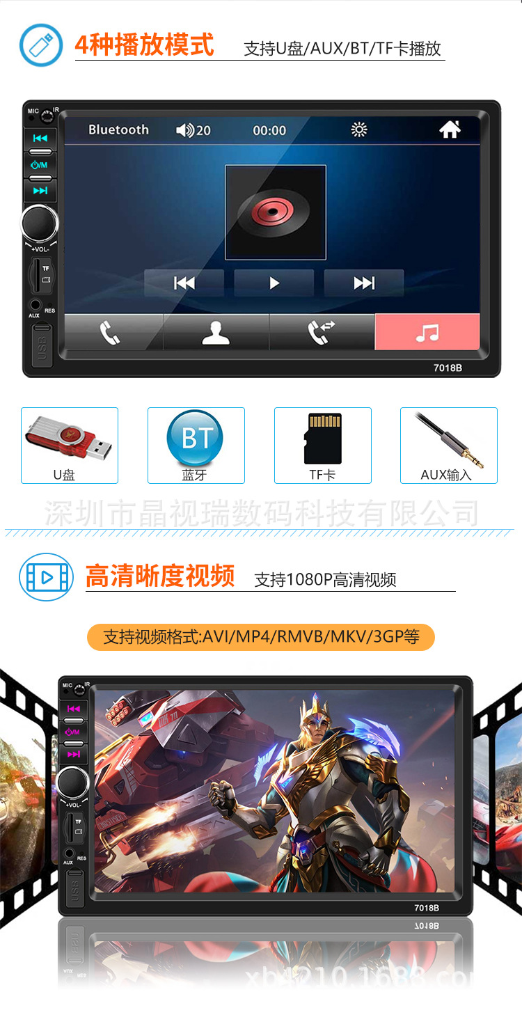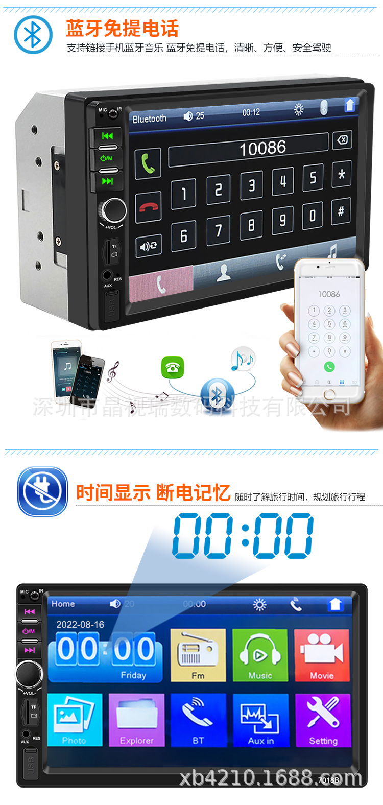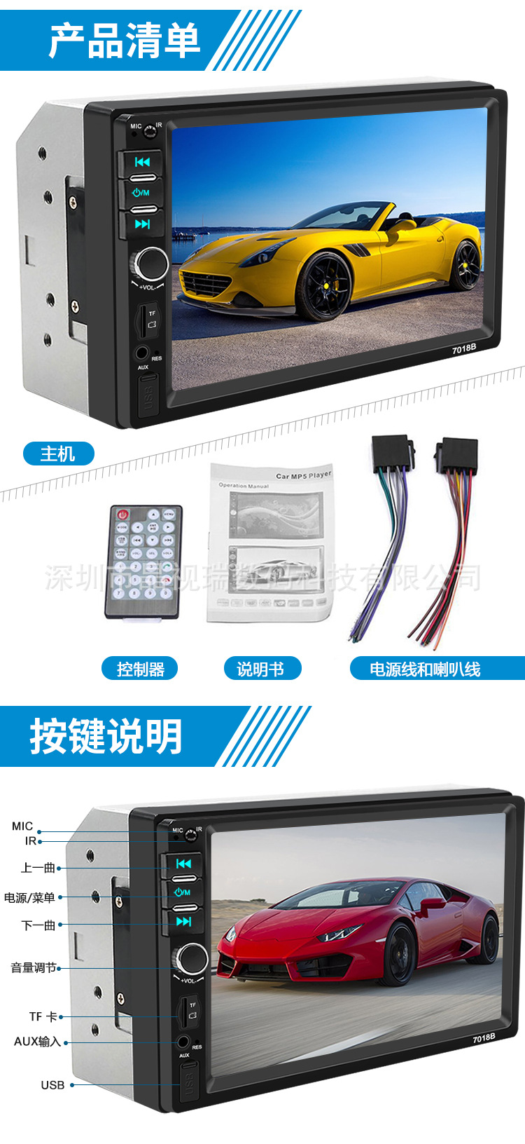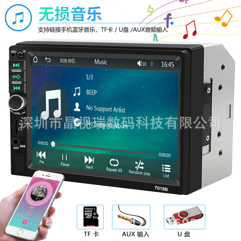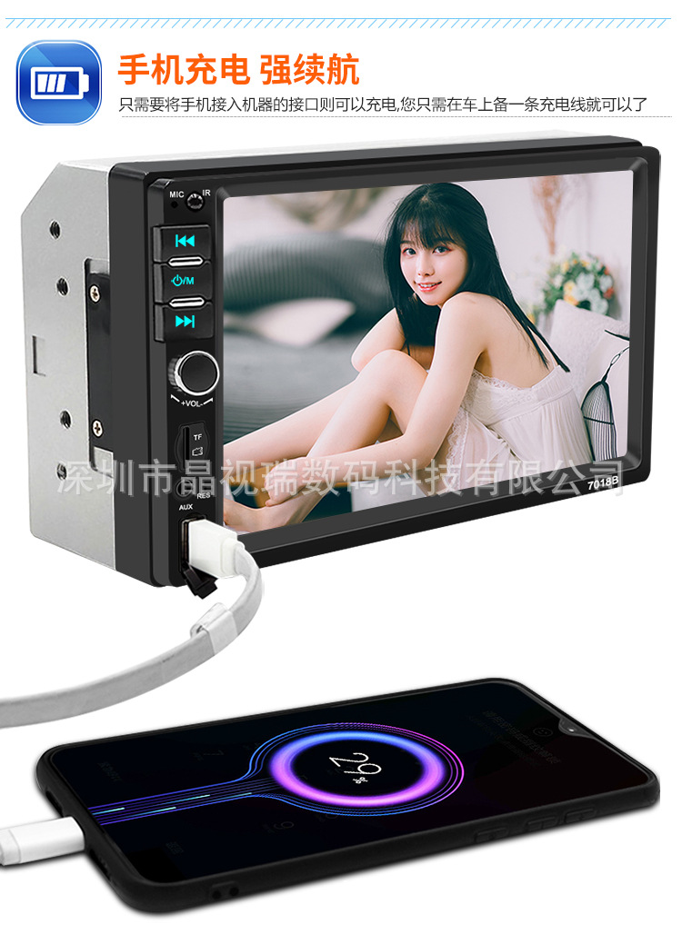 7-дюймовый автомобильный короткий двухшпиндельный MP4MP5-плеер Bluetooth-карта FM-соединение мобильного телефона реверсивное отображение изображения