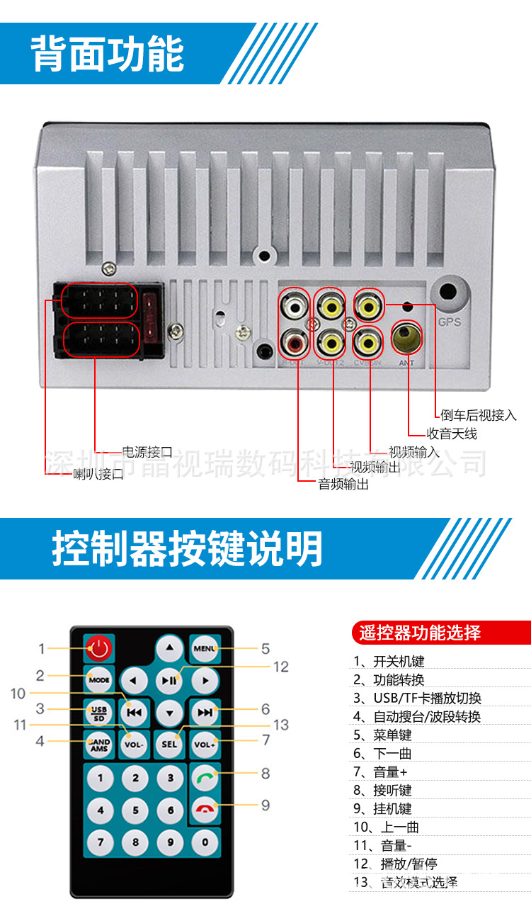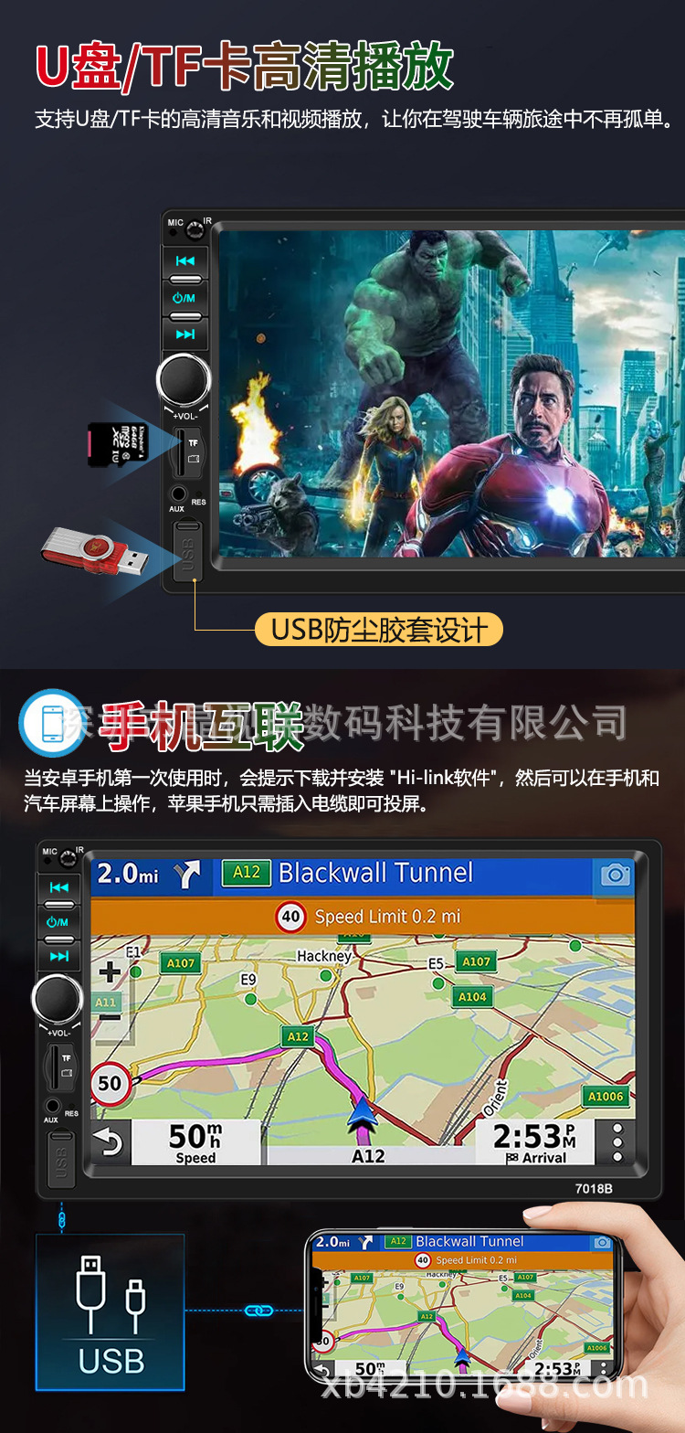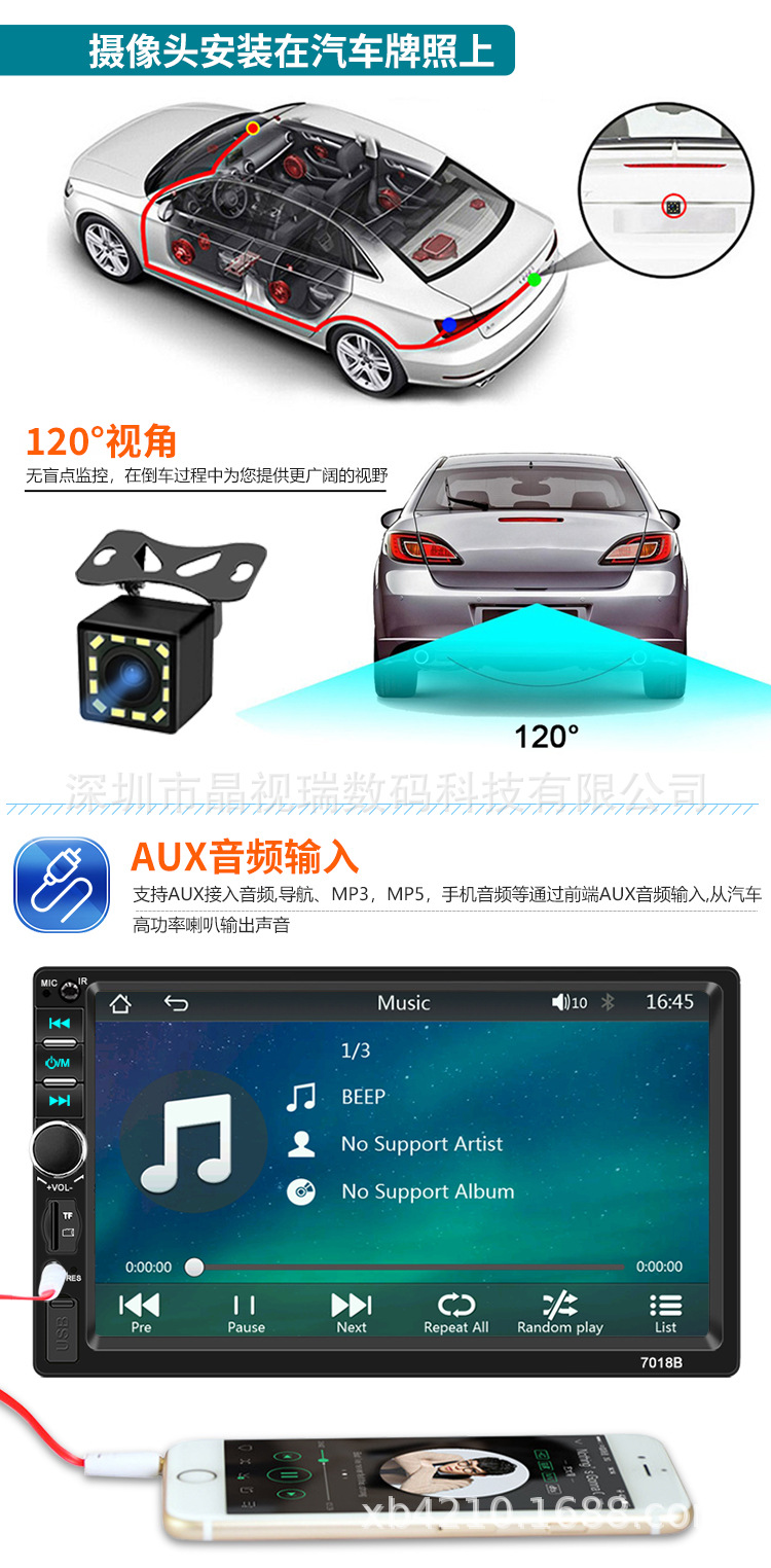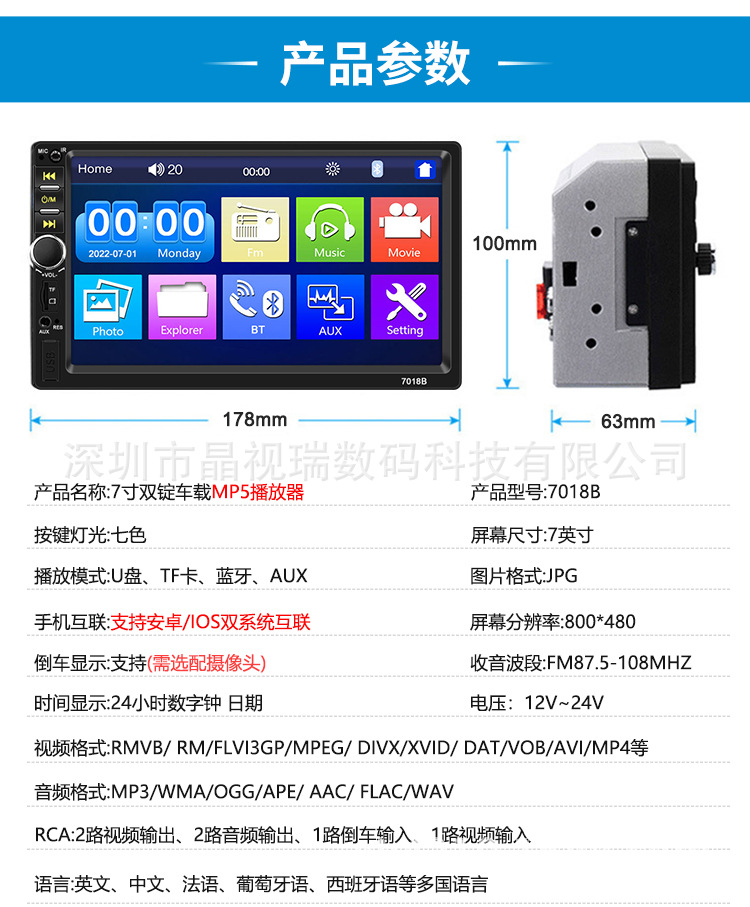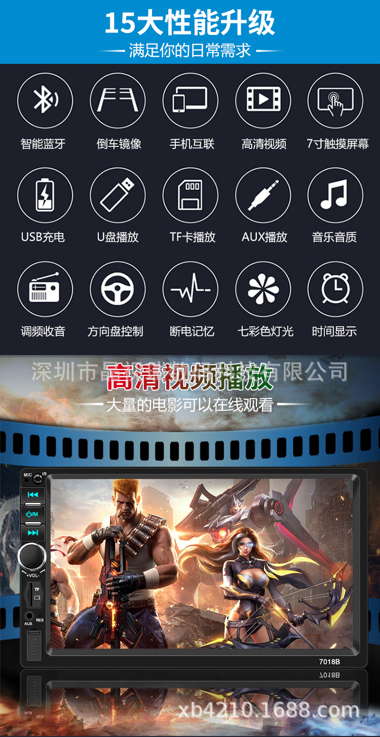 7-дюймовый автомобильный короткий двухшпиндельный MP4MP5-плеер Bluetooth-карта FM-соединение мобильного телефона реверсивное отображение изображения