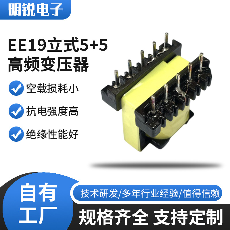 EE19高频变压器常应用于DC-DC转换器、驱动变压器、数码相机、开关电源共模电感等。