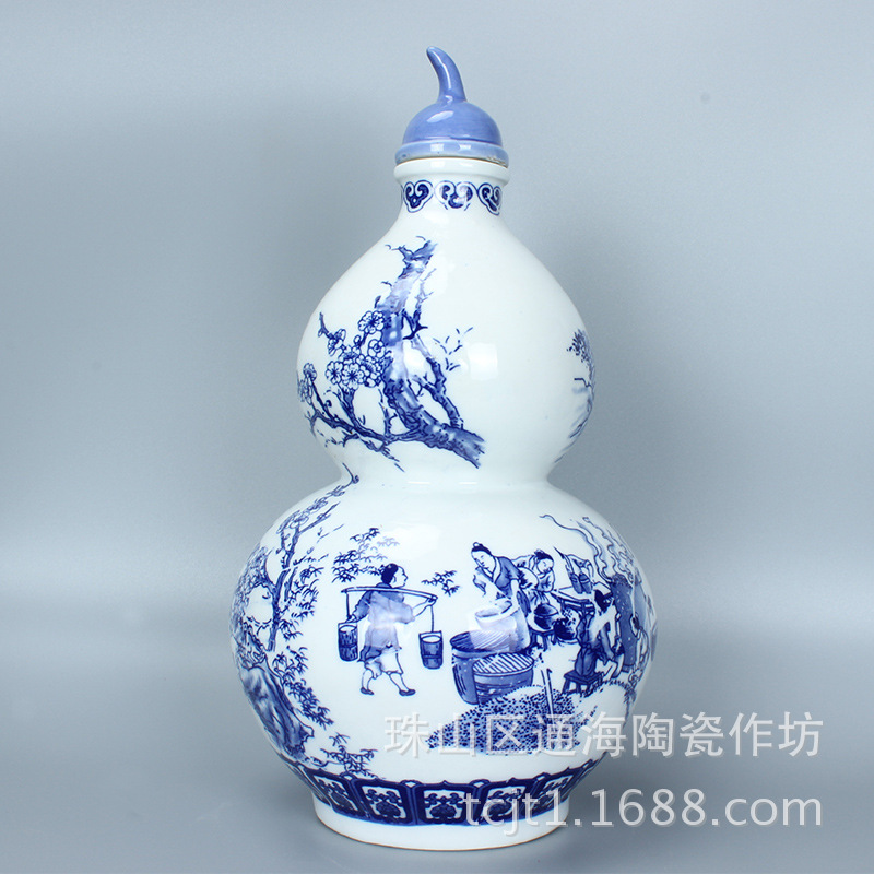 Цзиндэчжэнь керамическая банка для вина 1 Цзинь/3 Цзинь 5 Цзинь 10 Цзинь винная банка Тыква бутылка вина синий и белый фарфор оптовая фабрика