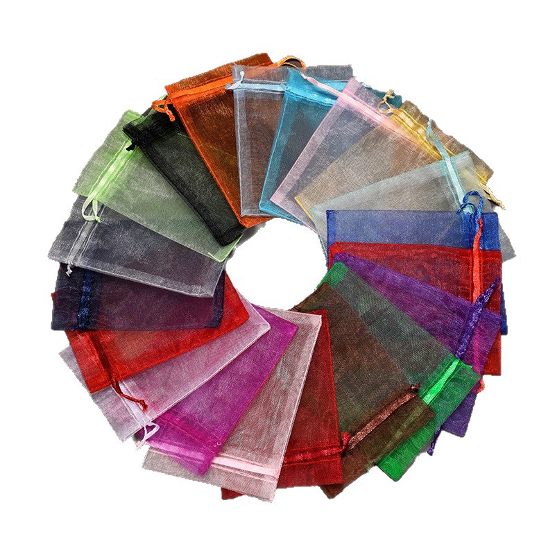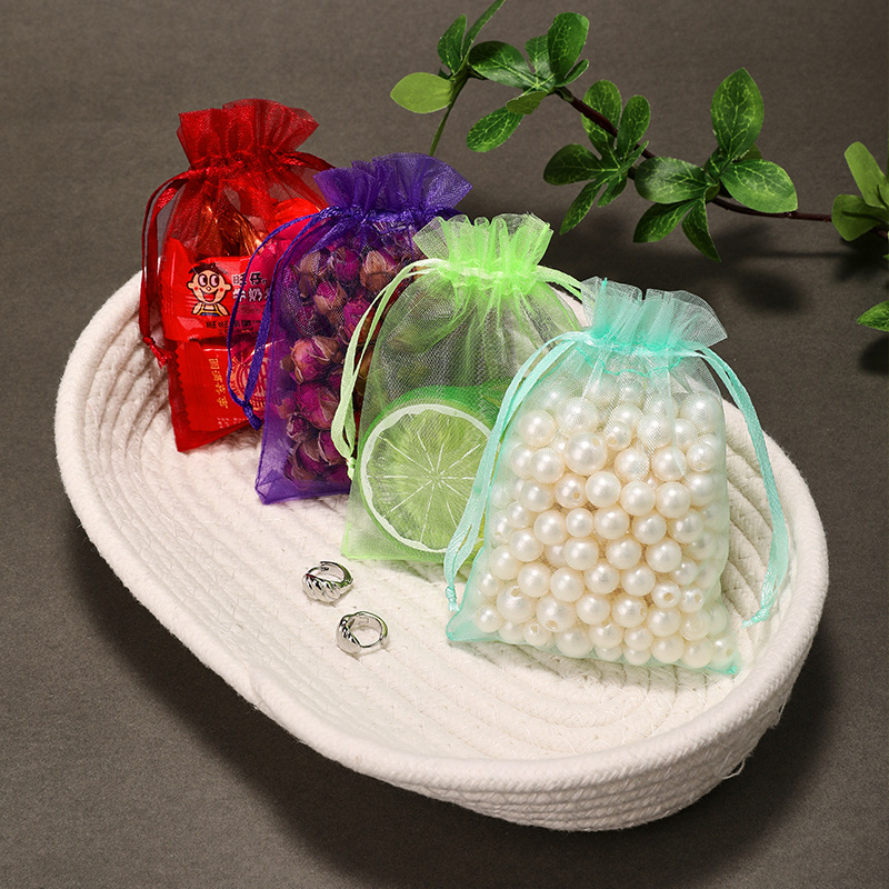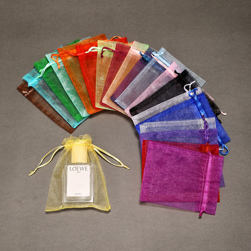 Сумка для пряжи на складе оптом сплошной цвет органзы свадебные конфеты карманный косметический подарок упаковка ювелирных изделий сетчатый мешок