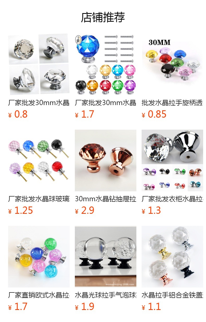 此款钻石水晶直径30mm 底座直径16mm(铝合金底座材质) 高度29mm