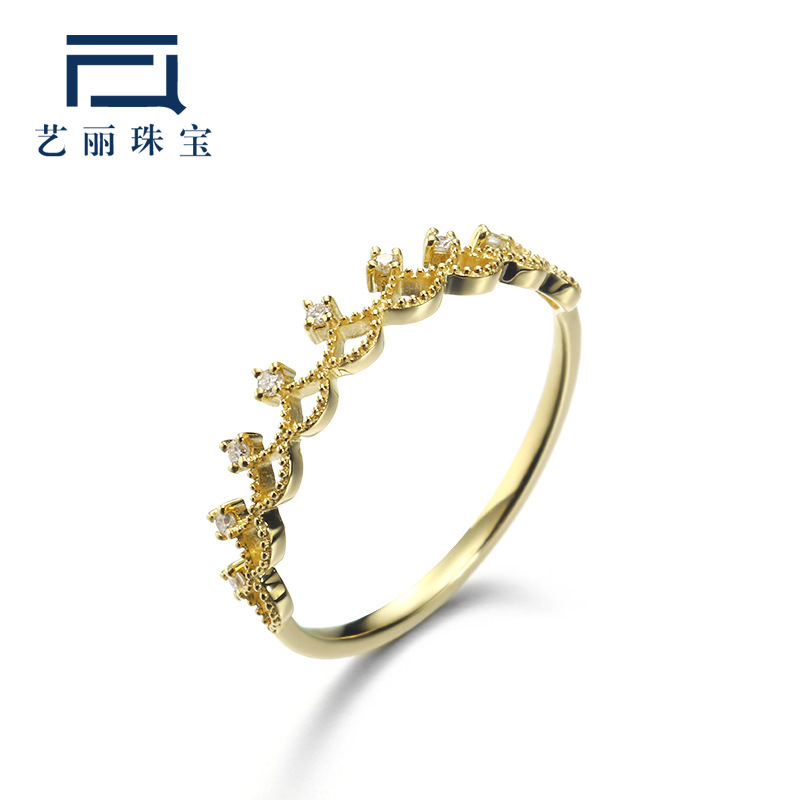 Японские легкие украшения 9K Золотая Корона Кольцо с микроинкрустацией из циркона, женское простое кольцо с полым Танабата