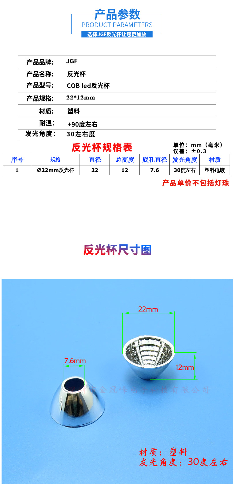 22 мм высота 12 мм COB источник света Светоотражающая чашка светодиодная Светоотражающая чашка конденсатор чашка Светоотражающая Чаша Пластиковая гальваника
