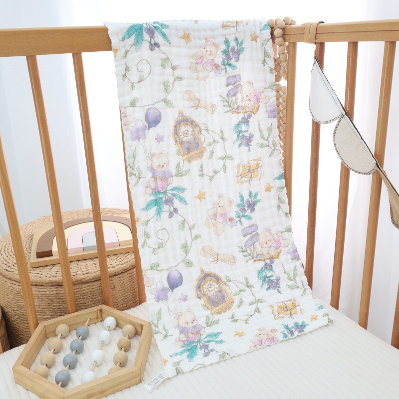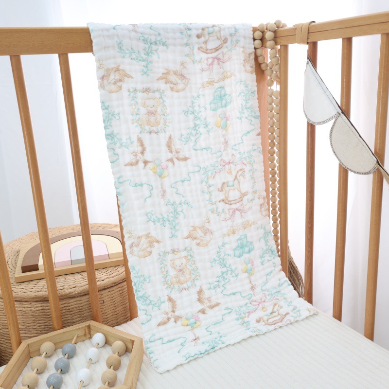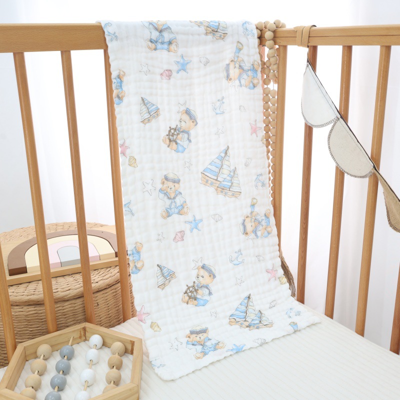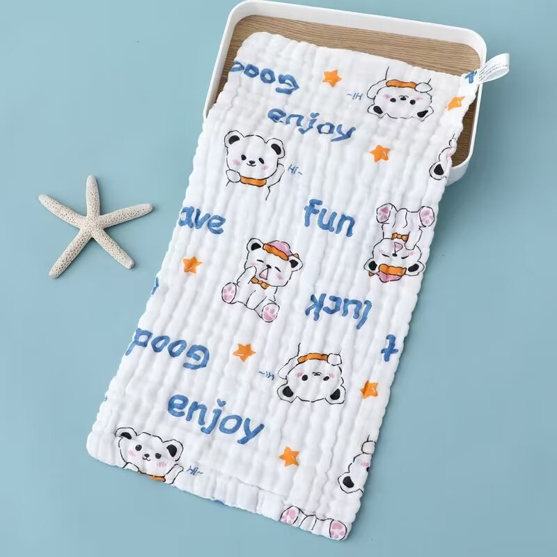 Детское полотенце из 6-слойной марли (25*50 см), 100% хлопок, с принтом, для детей и младенцев, для ежедневного использования, оптом, супермягкое
