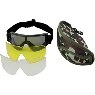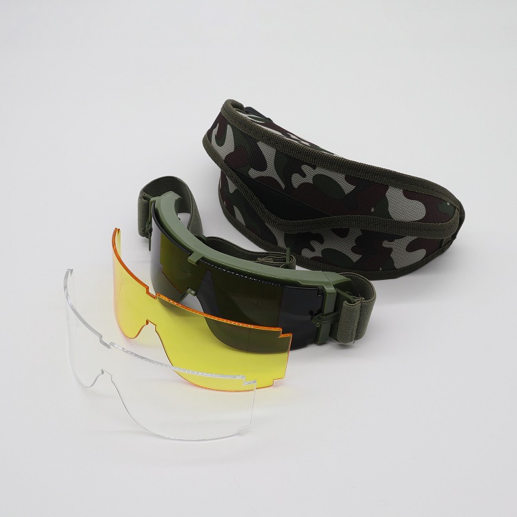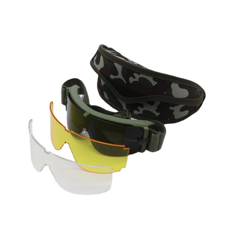 眼镜+黄色/透明镜片,绿色迷彩布包包装。50个一箱。