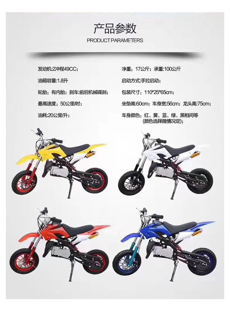 Двухтактные и четырехтактные детские внедорожные мотоциклы, квадроциклы для любых типов местности, пляжные спортивные автомобили, малогабаритные электрические транспортные средства 49 куб. см для горной местности