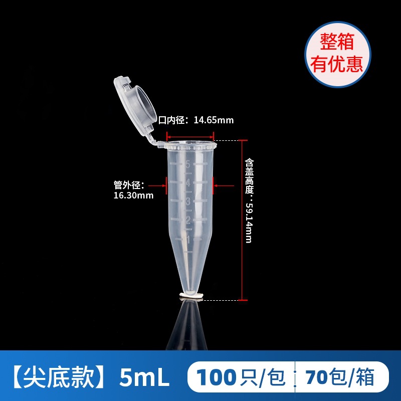 5ml连盖尖底离心管 100只/包 40包/箱