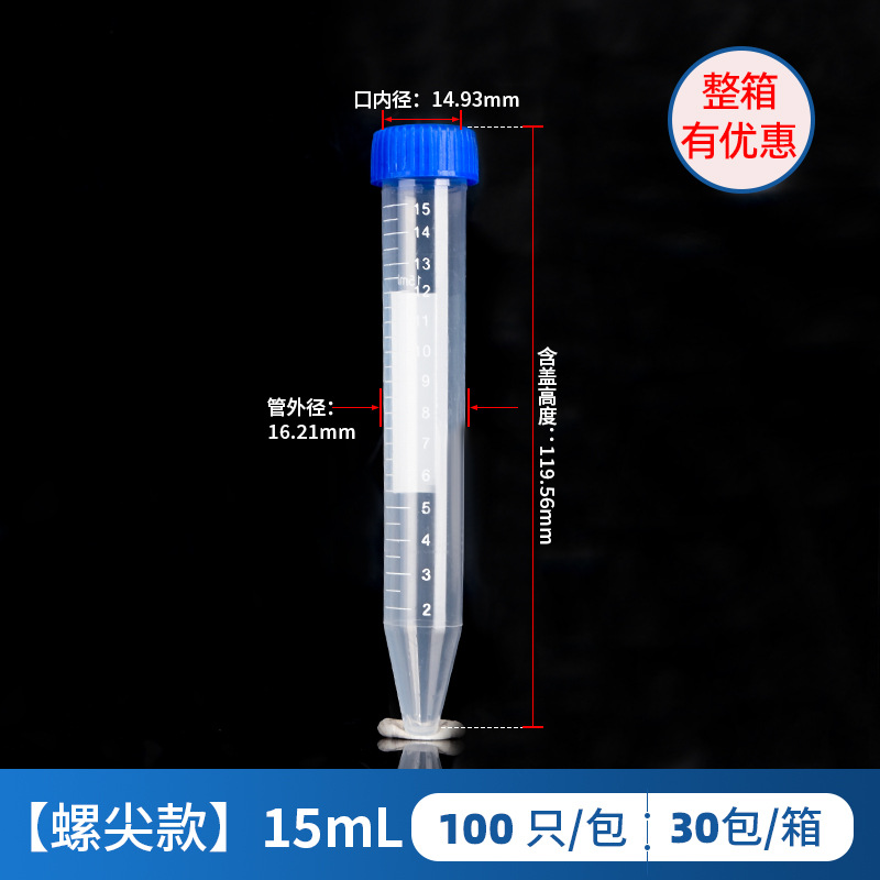 15ml螺口尖底离心管 100只/包 40包/箱