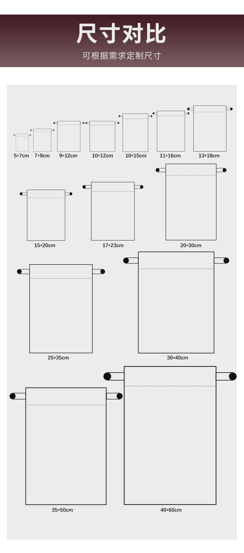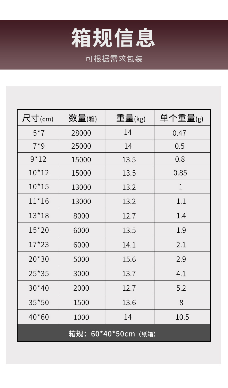 20*30CM; 40*60CM; 30*40CM; 35*50CM; 8*10CM; 5*7CM; 15*20CM; 25*35CM; 17*23CM; 10*15CM; 13*18CM; 10*12CM; 9*12CM; 7*9CM; 11*16CM