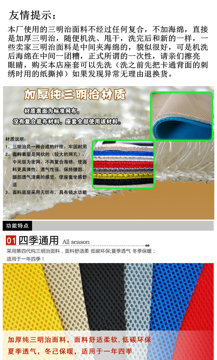 这是通用型汽车座套,适用于中低档汽车的车型,特殊尺寸可联系客服定制。