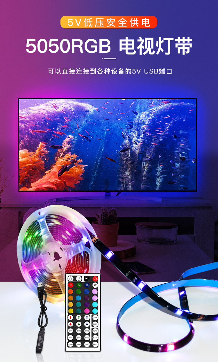 5vRGB световая полоса 5050USB цветная мягкая световая полоса USB световая полоса ТВ фоновый свет красочная световая полоса горячая распродажа