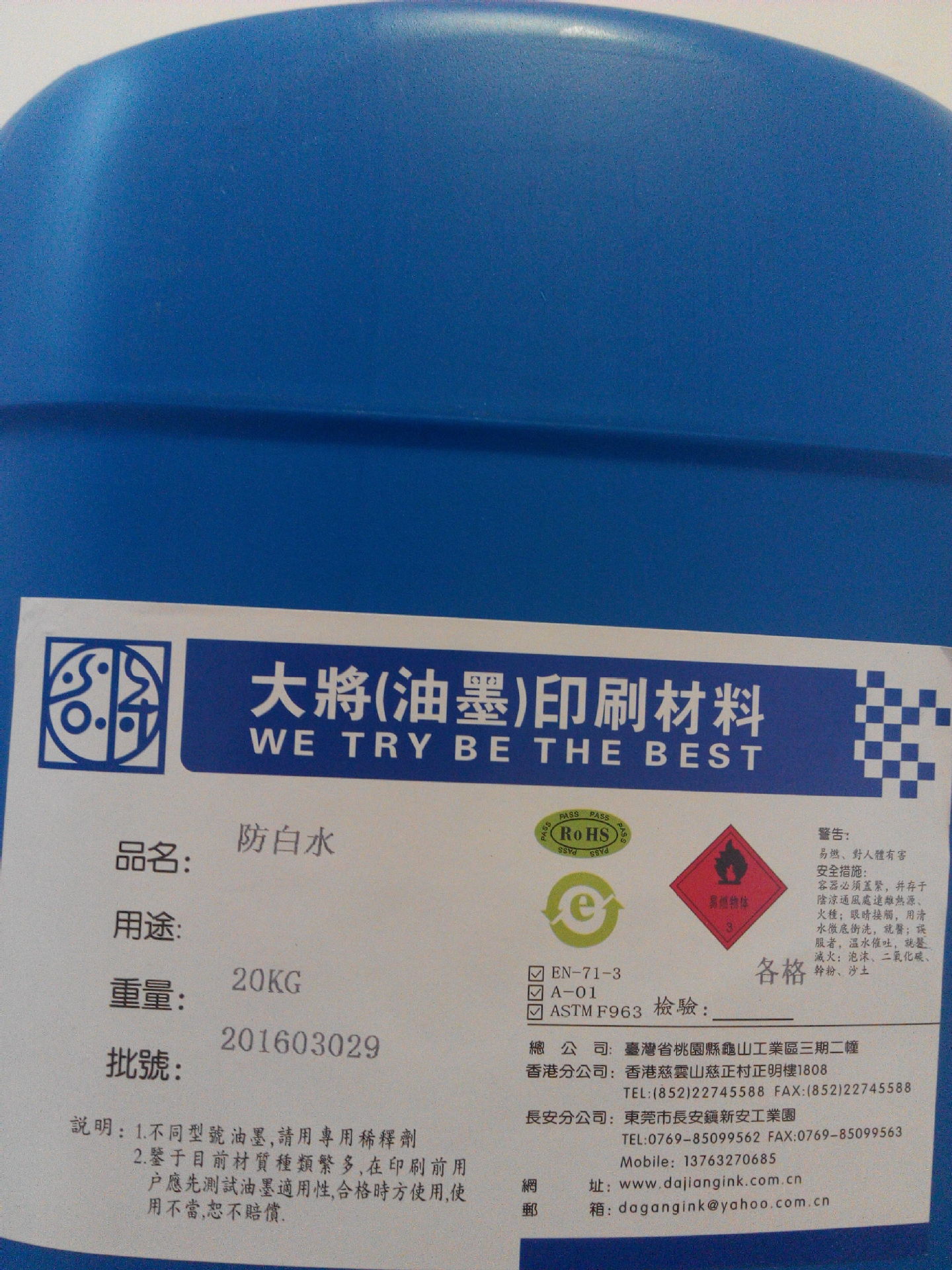 大将油墨有限公司创始于1992年,是一个专业生产丝印喷涂油墨及水性印染颜料。
