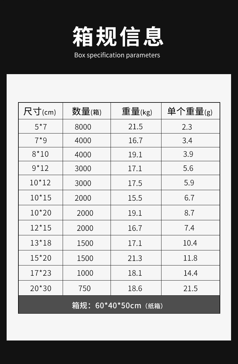 20*30CM; 30*40CM; 8*10CM; 5*7CM; 15*20CM; 17*23CM; 10*15CM; 13*18CM; 12*15CM; 10*20CM; 10*12CM; 9*12CM; 7*9CM
