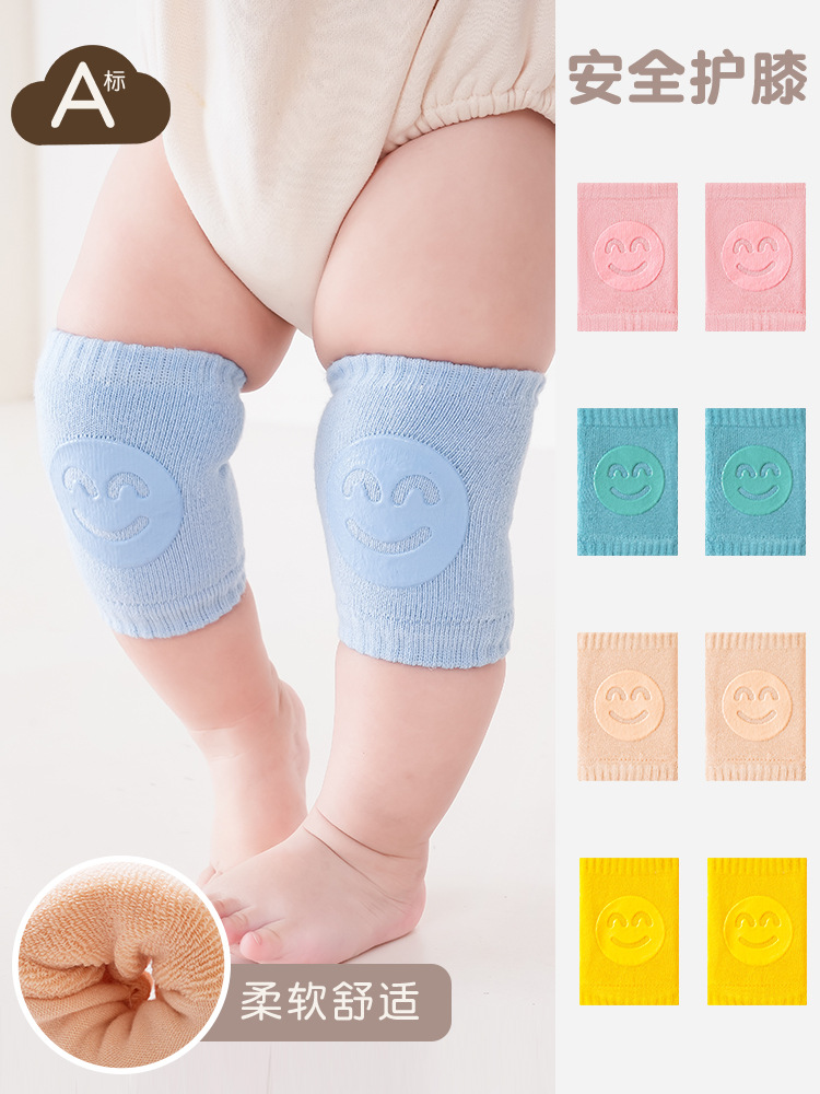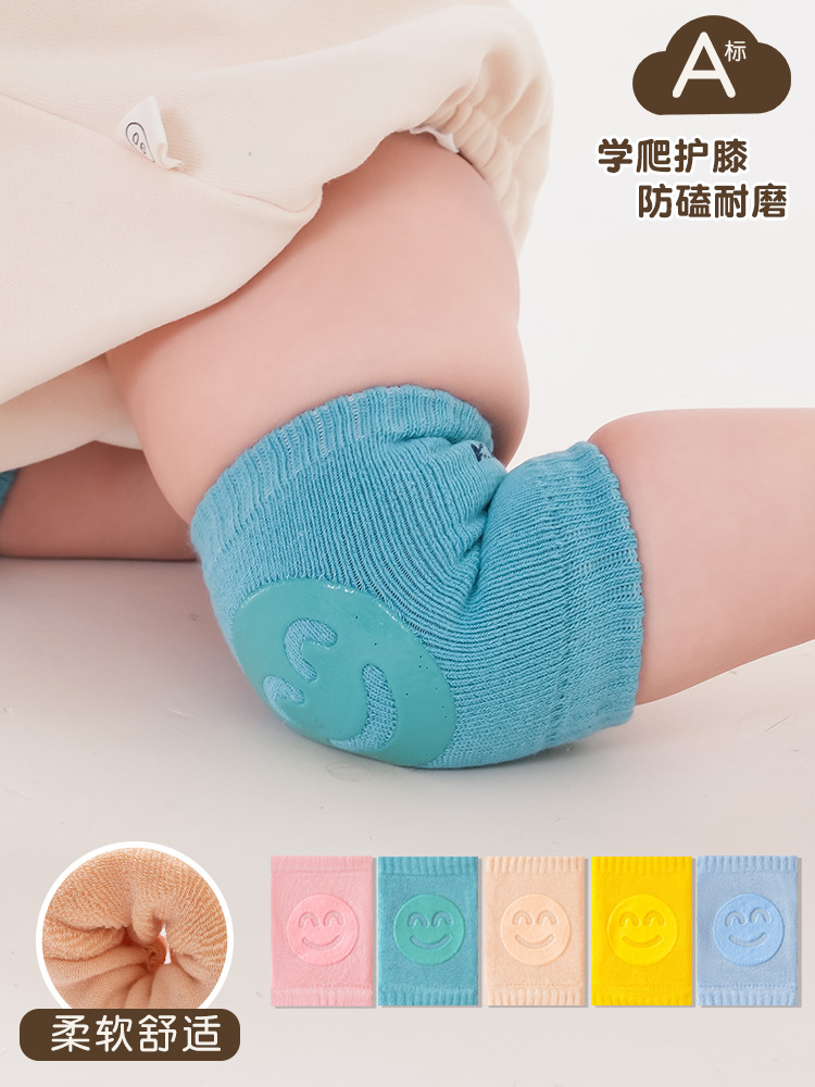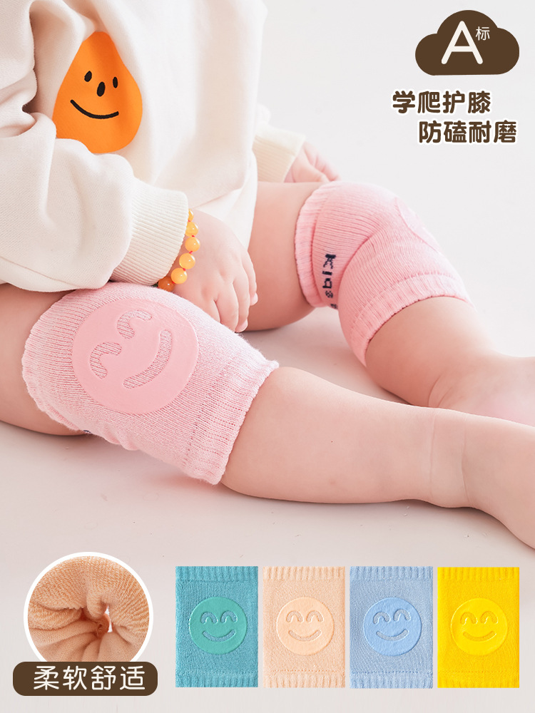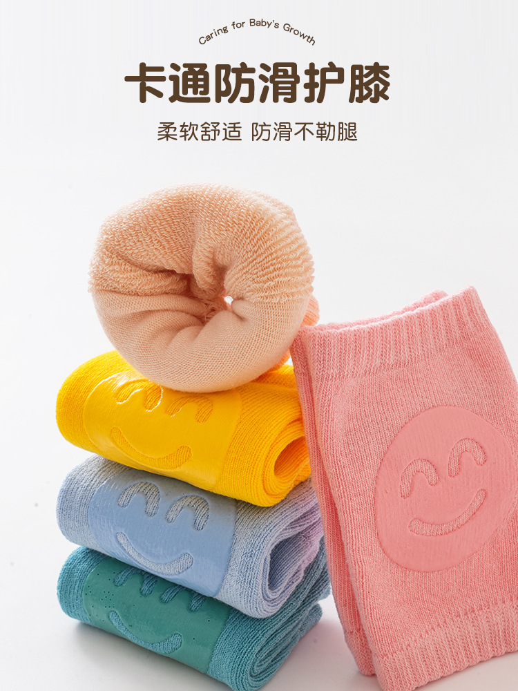 儿童防滑点胶笑脸护膝 新生儿毛圈加厚爬行护腕 婴儿纯棉护膝批发