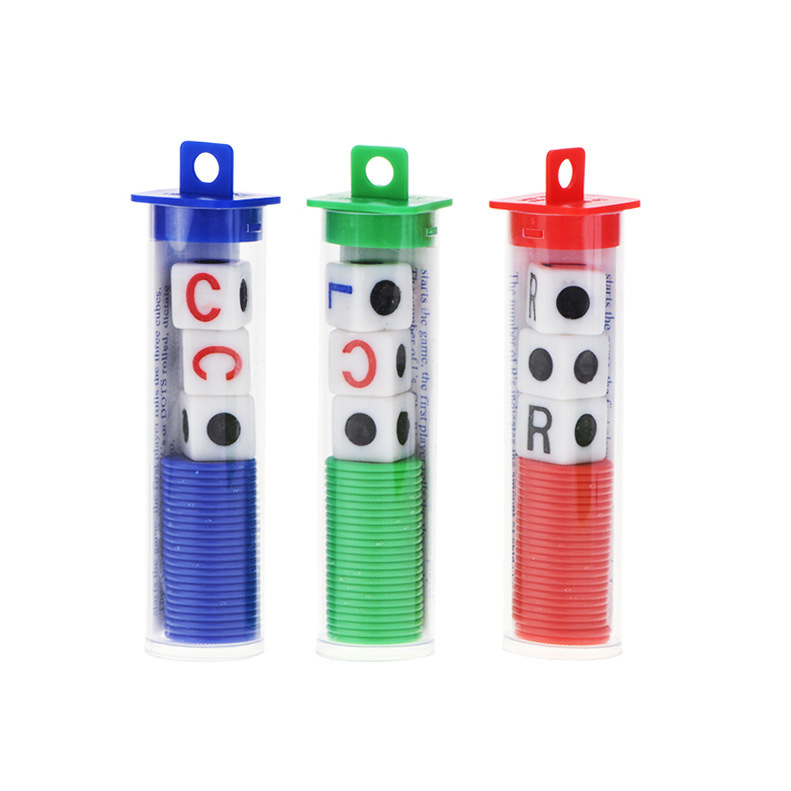 Трансграничная поставка левой, средней и правой забавных игральных костей, английская версия, трубка с чипами LCR, четыре цвета