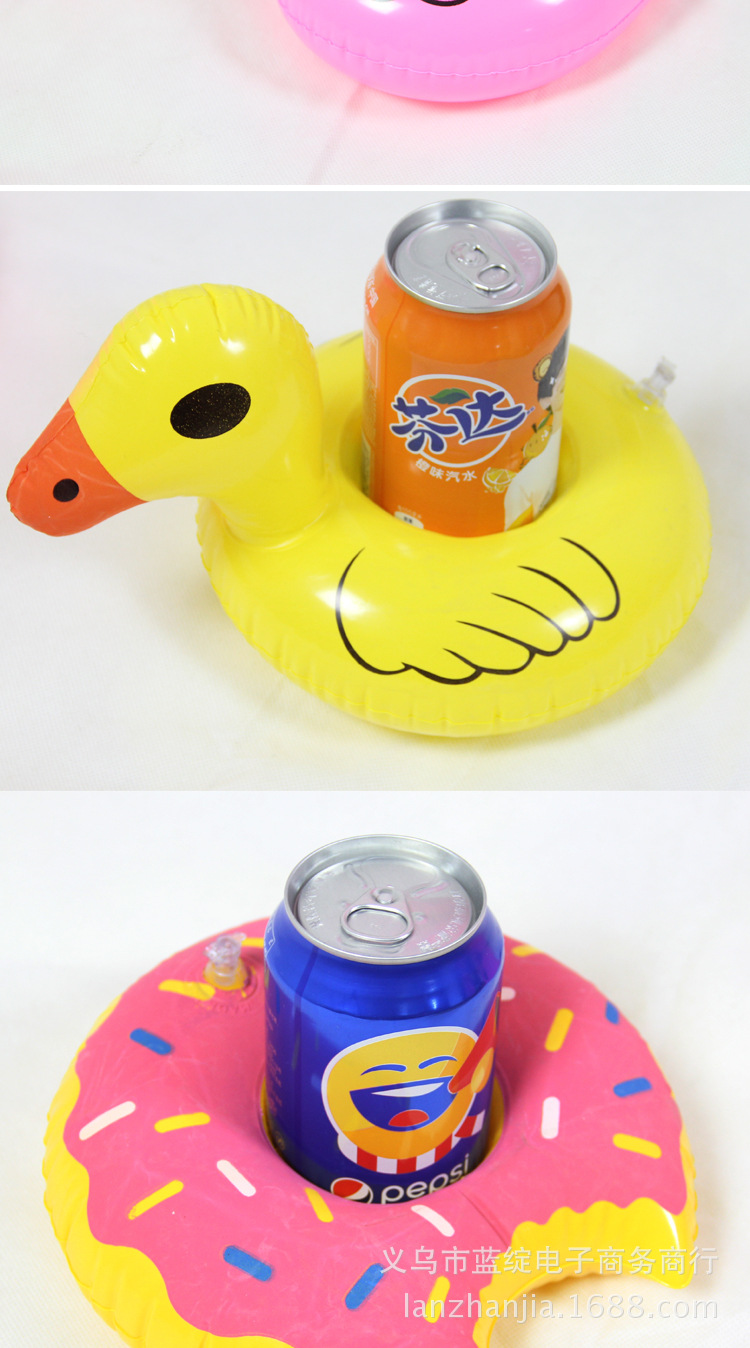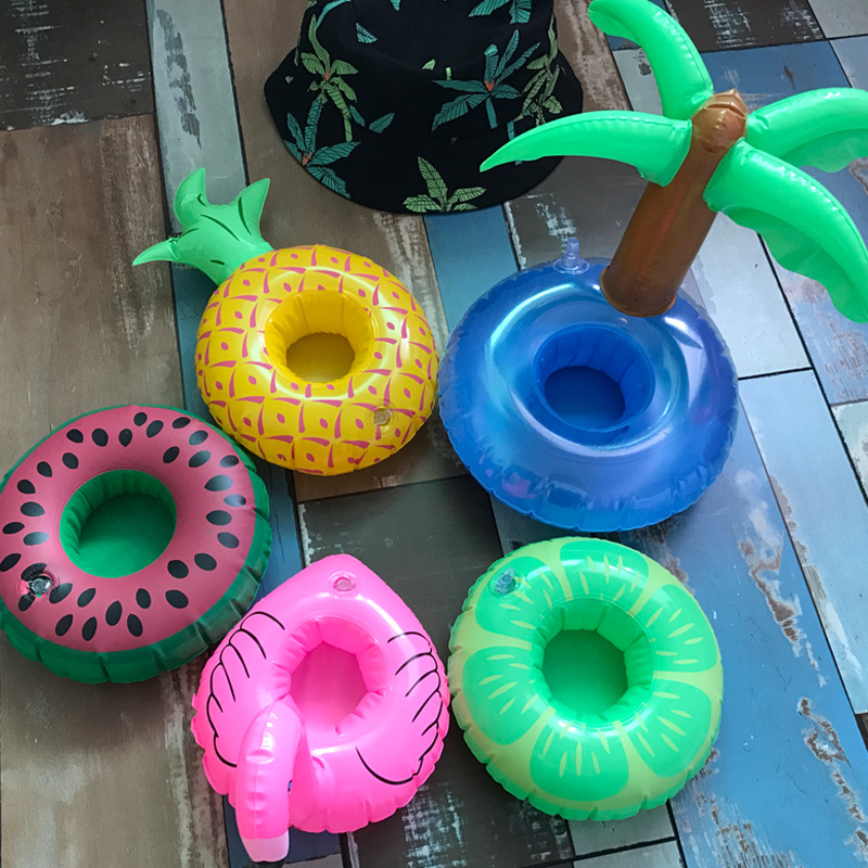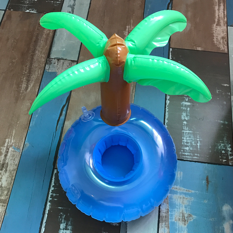 Оптовая продажа новый модный мультфильм надувной мини-подстаканник кокосовое дерево ананас водная надувная игрушка фото артефакт