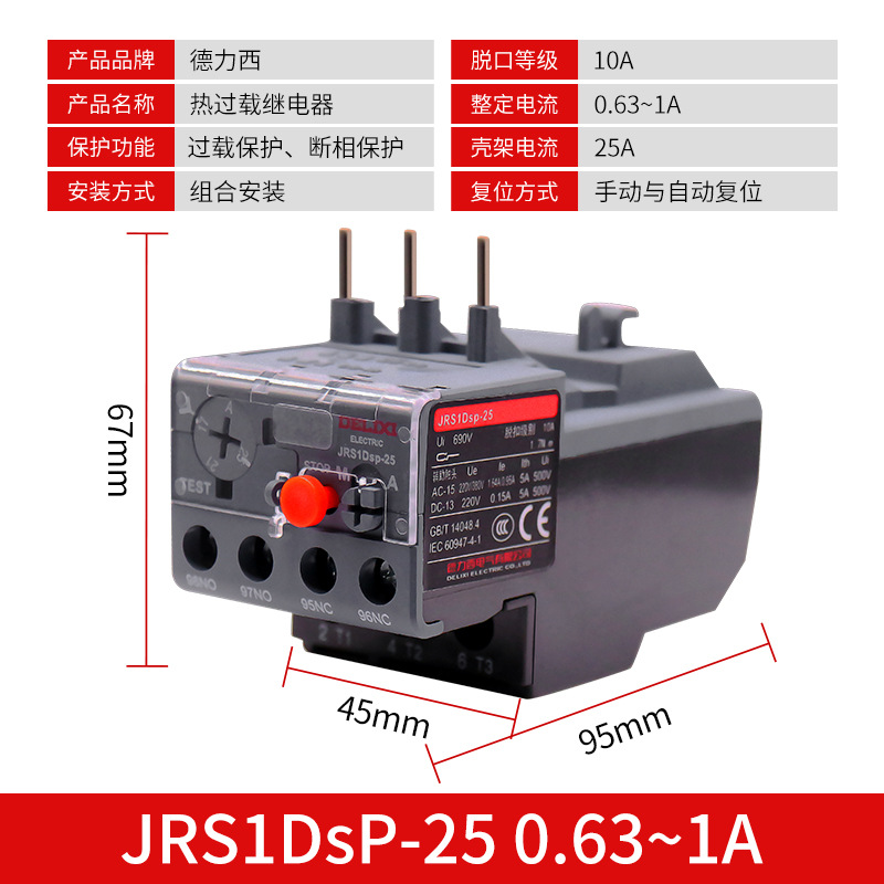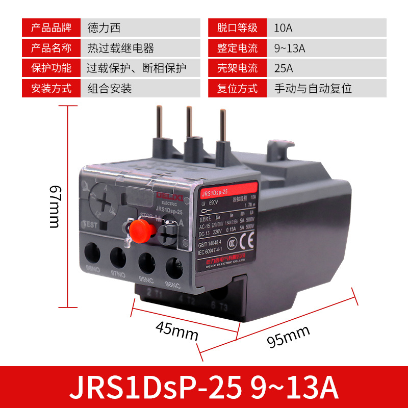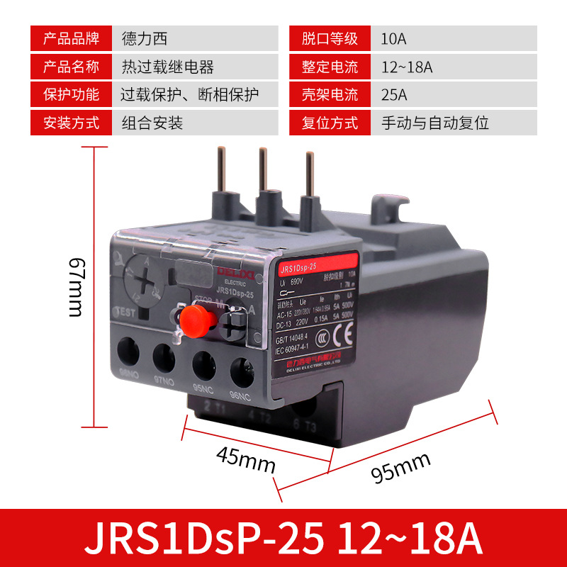 Реле тепловой перегрузки Delixi JRS1DSp-25/Z LR2 25A18A термозащита с CJX2