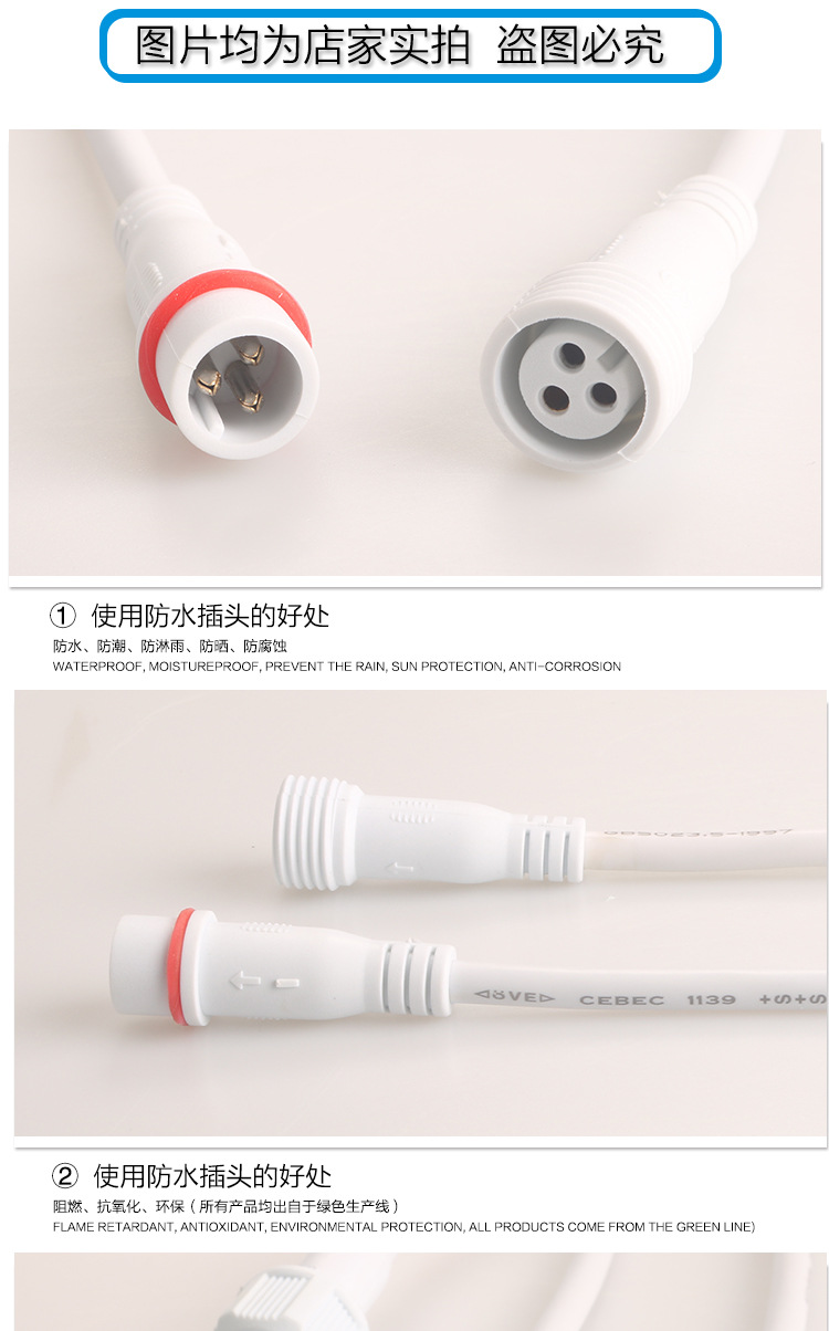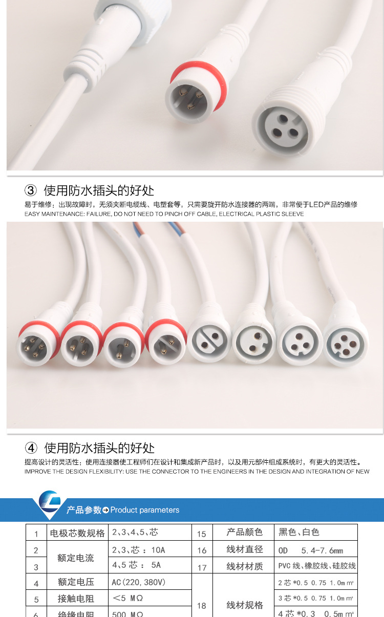 Наружное освещение 17MM средняя головка 3-жильный штекер водонепроницаемый штекер и гнездовой разъем Белый