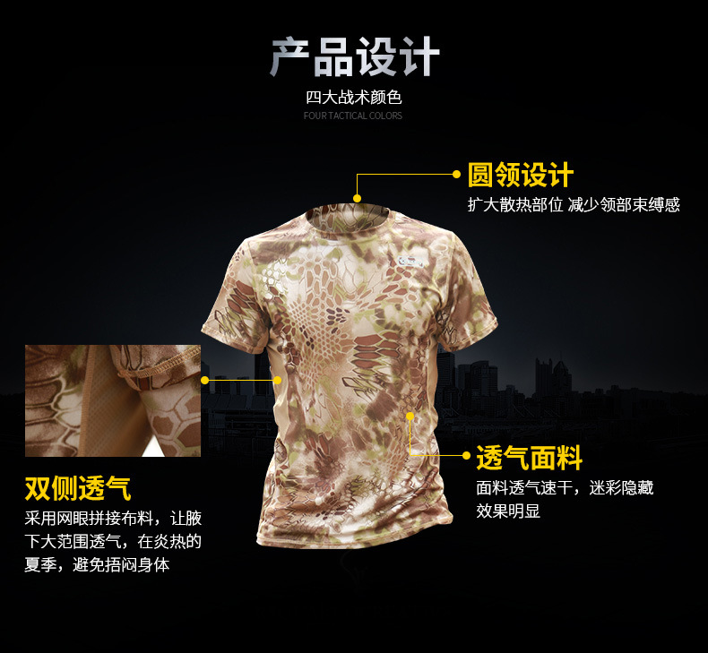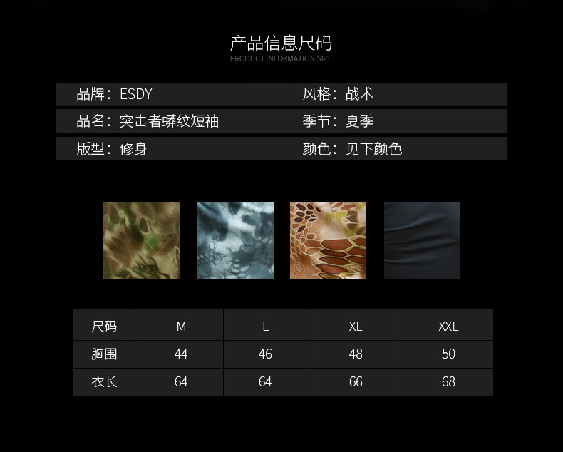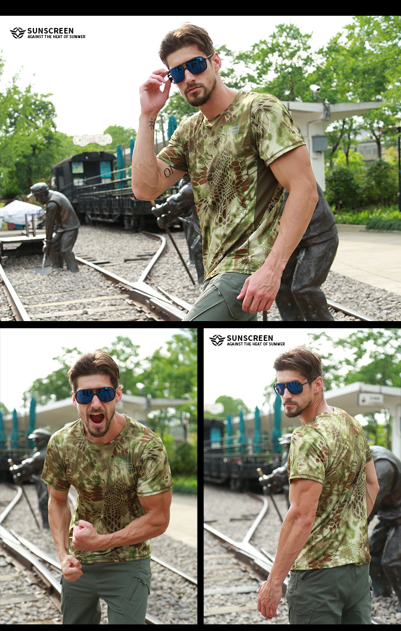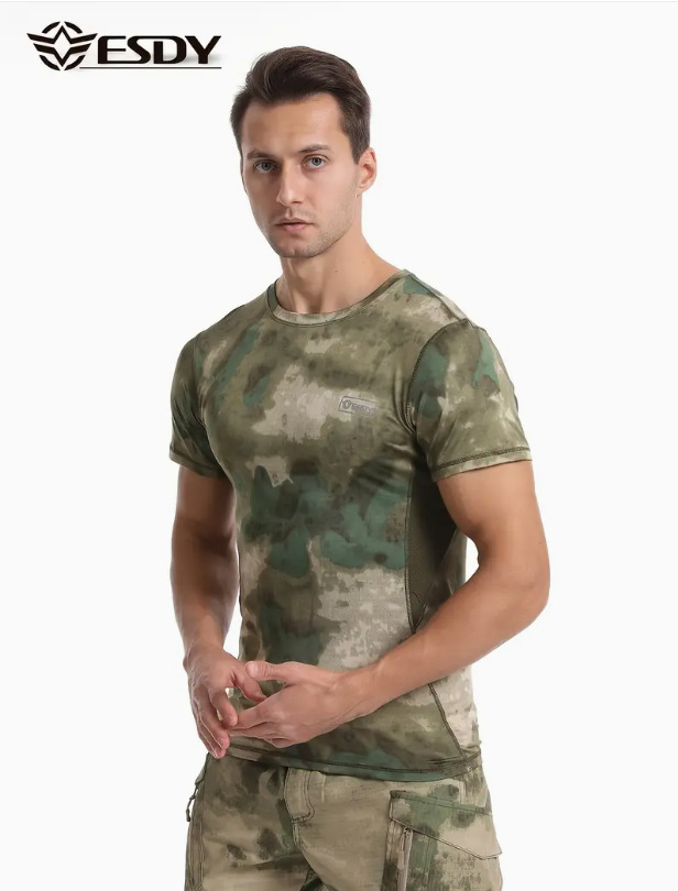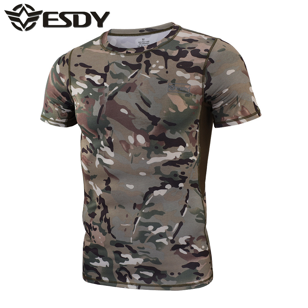 ESDY Raider тактическая короткая рукав Уличная присоска Спортивная Фитнес камуфляжная Мужская Базовая летняя футболка с питоном