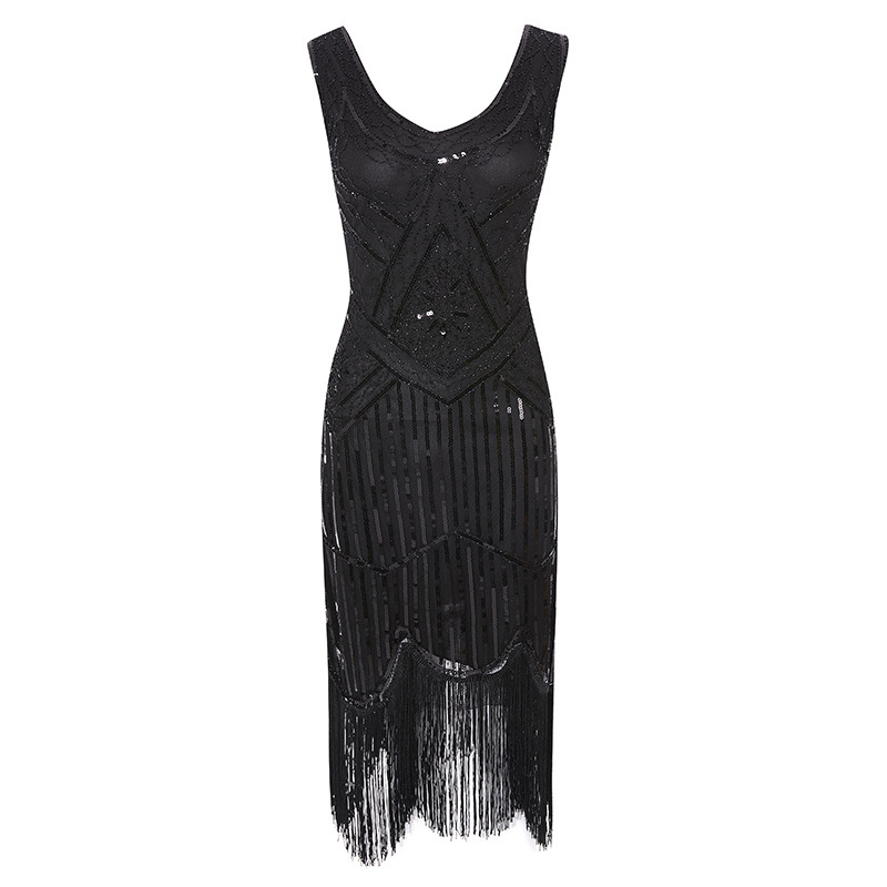 1920 Винтажное платье с кисточками и блестками Платье из бисера с кисточками Амазонка Взрывы Высококлассное банкетное платье