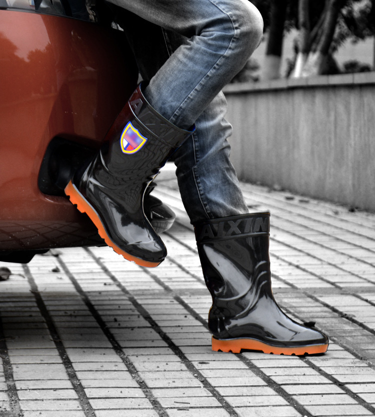 Черные модные резиновые сапоги до середины икры, нескользящие мужские защитные сапоги для стройплощадки с резиновой подошвой, водонепроницаемая рабочая обувь, оптом от производителя