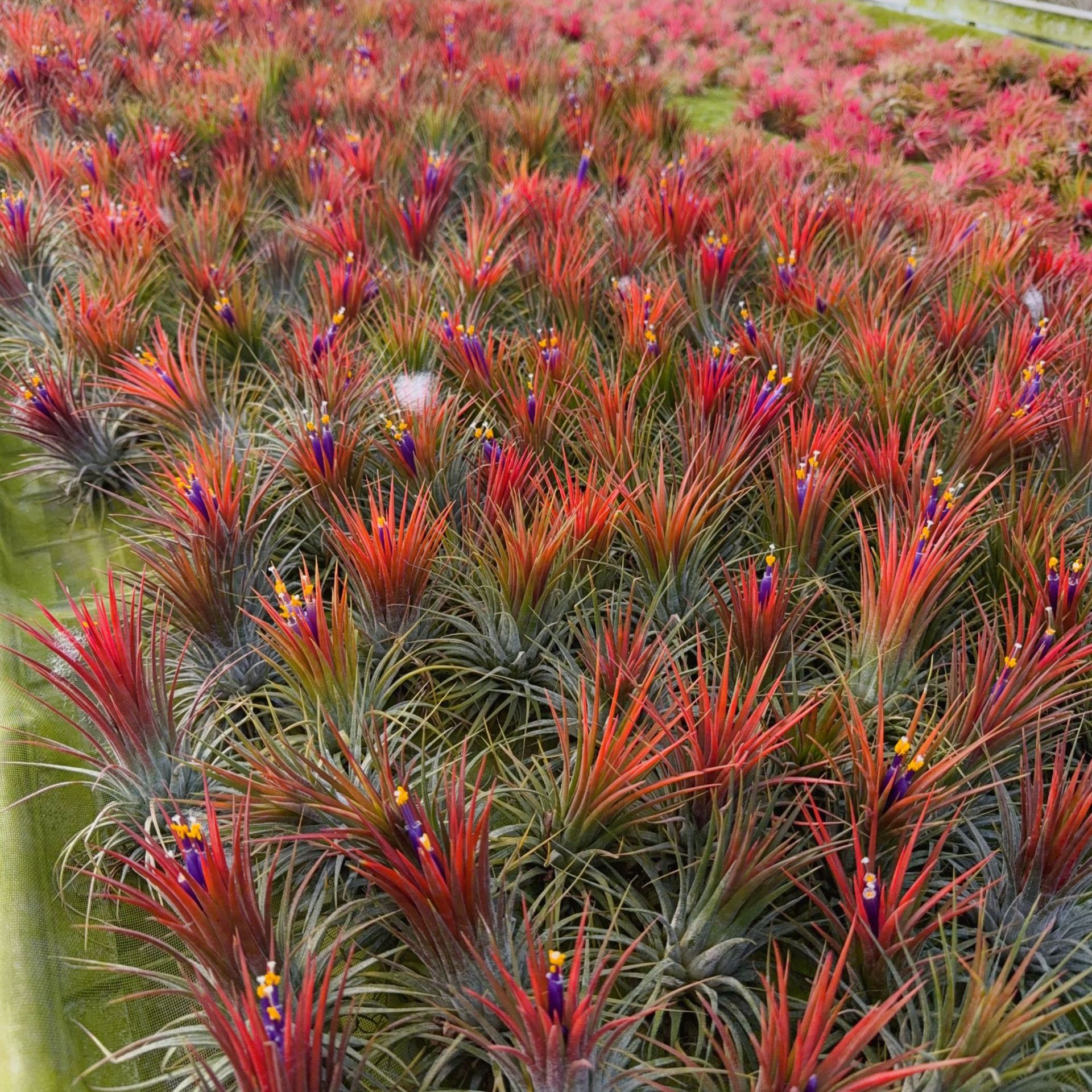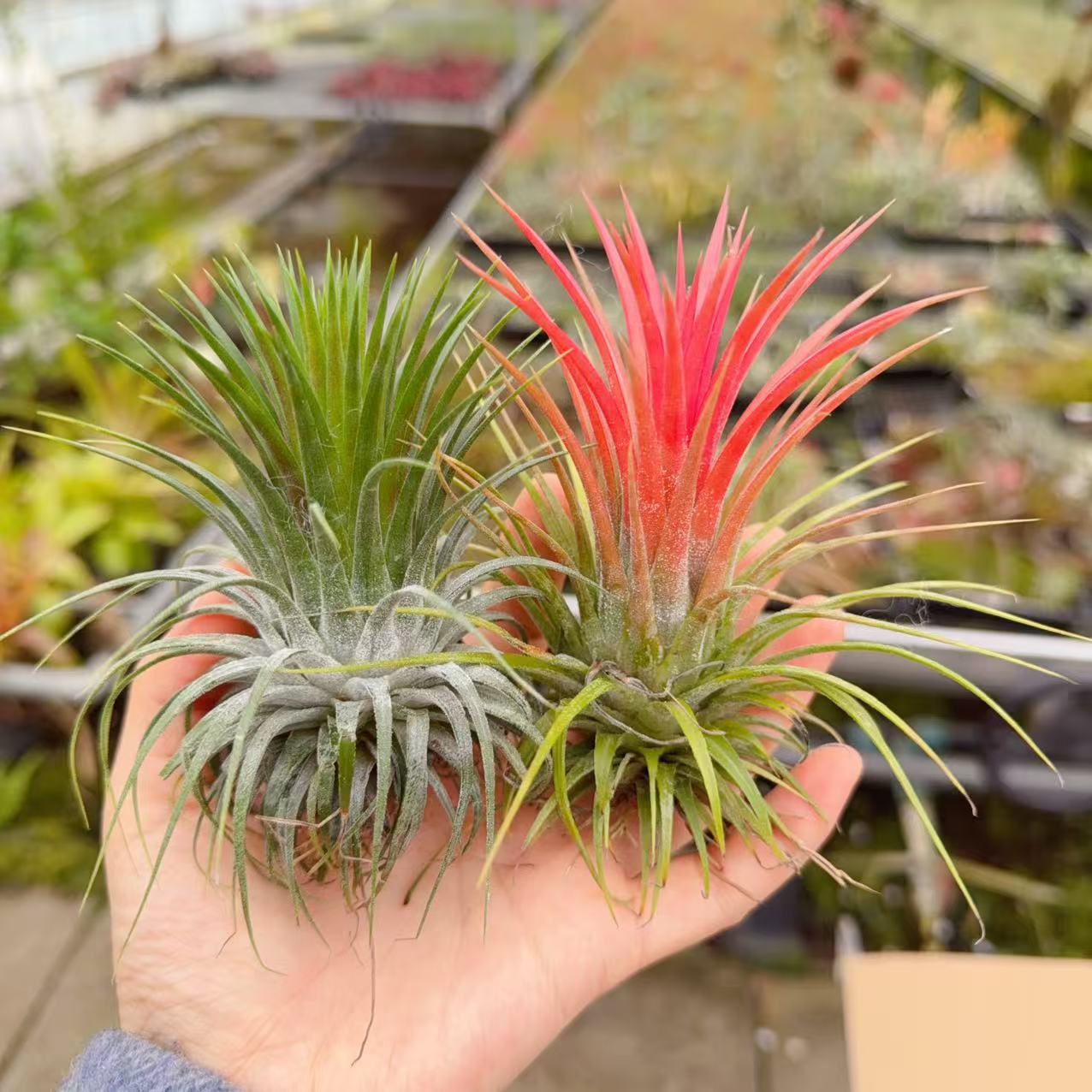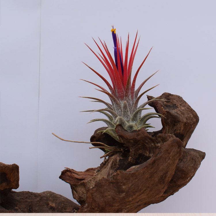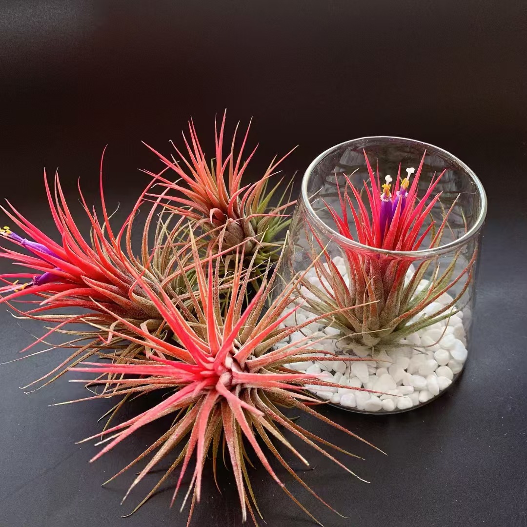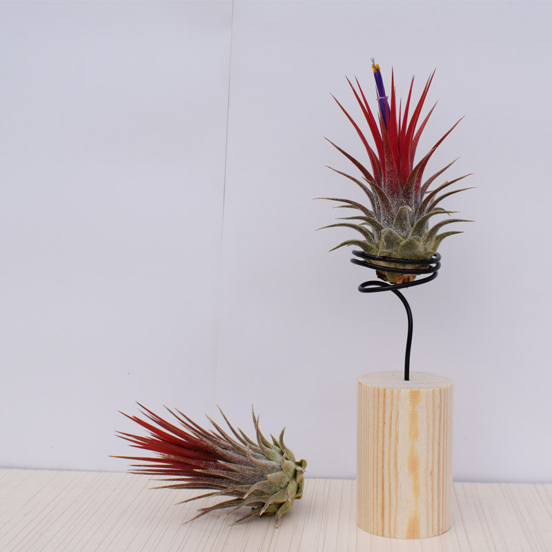 大棵的英特精灵花期发色鲜艳的红色,紫色吸管状花箭,黄色柱头,推荐与高脚螺旋支架搭配,将螺旋旋进精灵的下半部分以固定。