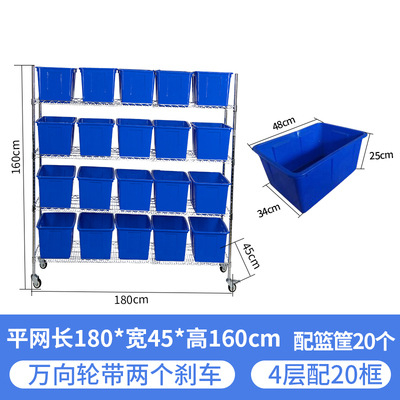 长150*宽45*高160cm四层(每层可配4个筐). 长180*宽45*高160cm四层(每层可配5个筐)